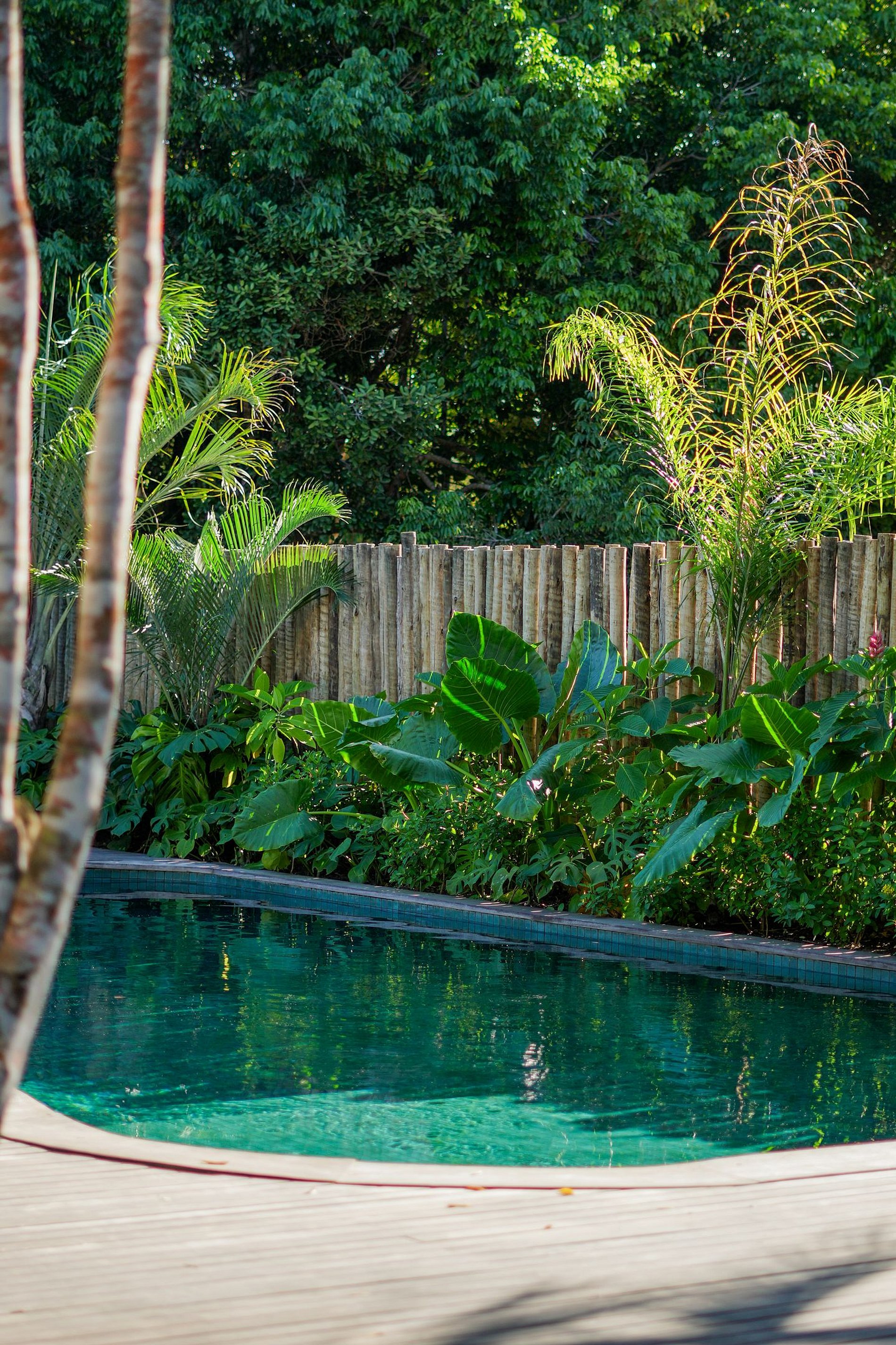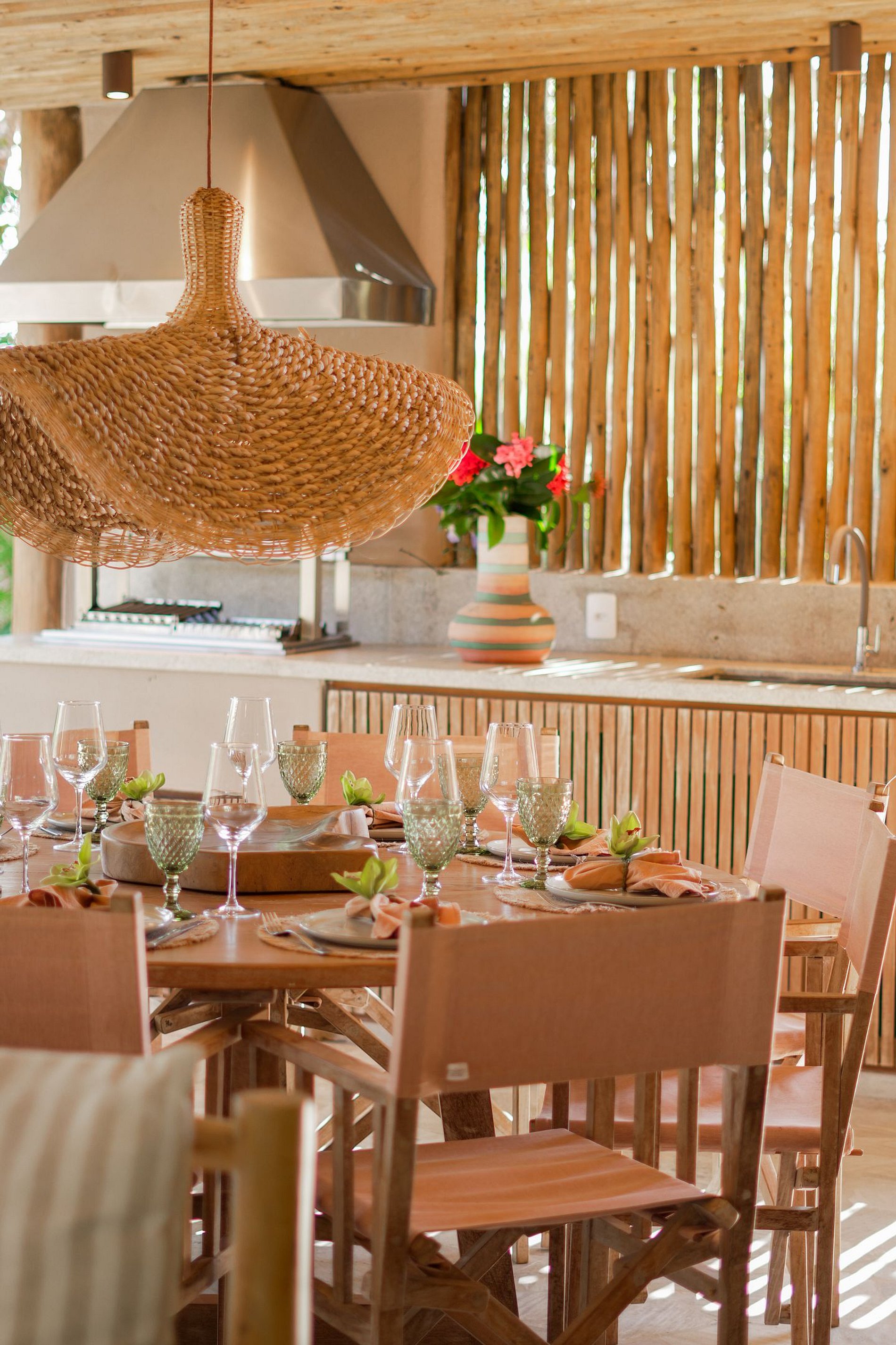 O paisagismo, assinado por Luis Carlos Orsini, valoriza espécies nativas e emoldura uma piscina com deck de madeira e espreguiçadeiras. A varanda abriga uma charmosa área gourmet com churrasqueira e mesa redonda de madeira para refeições ao ar livre. Além disso, há um espaço com sofás e poltronas, perfeito para momentos de relaxamento e convivência.