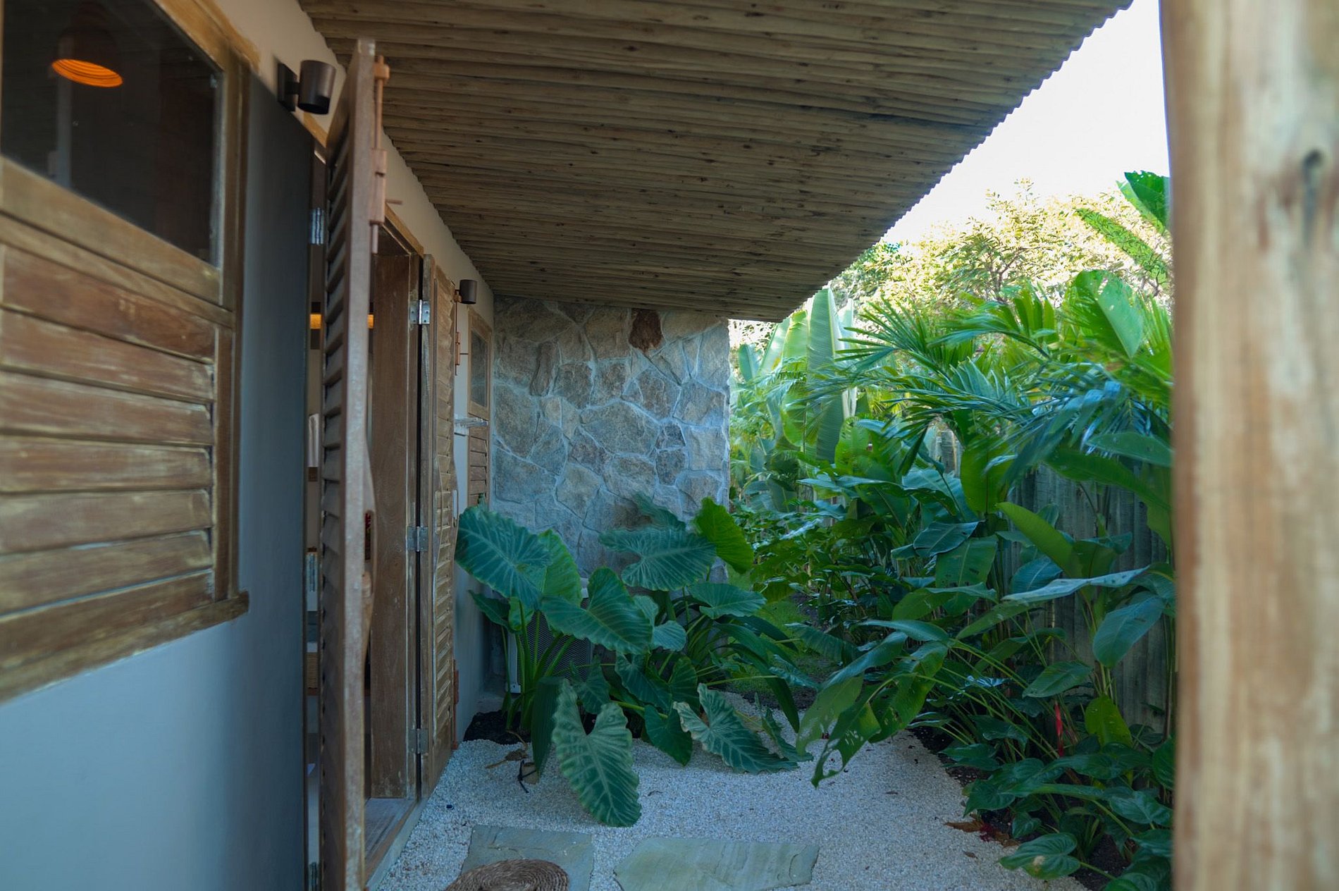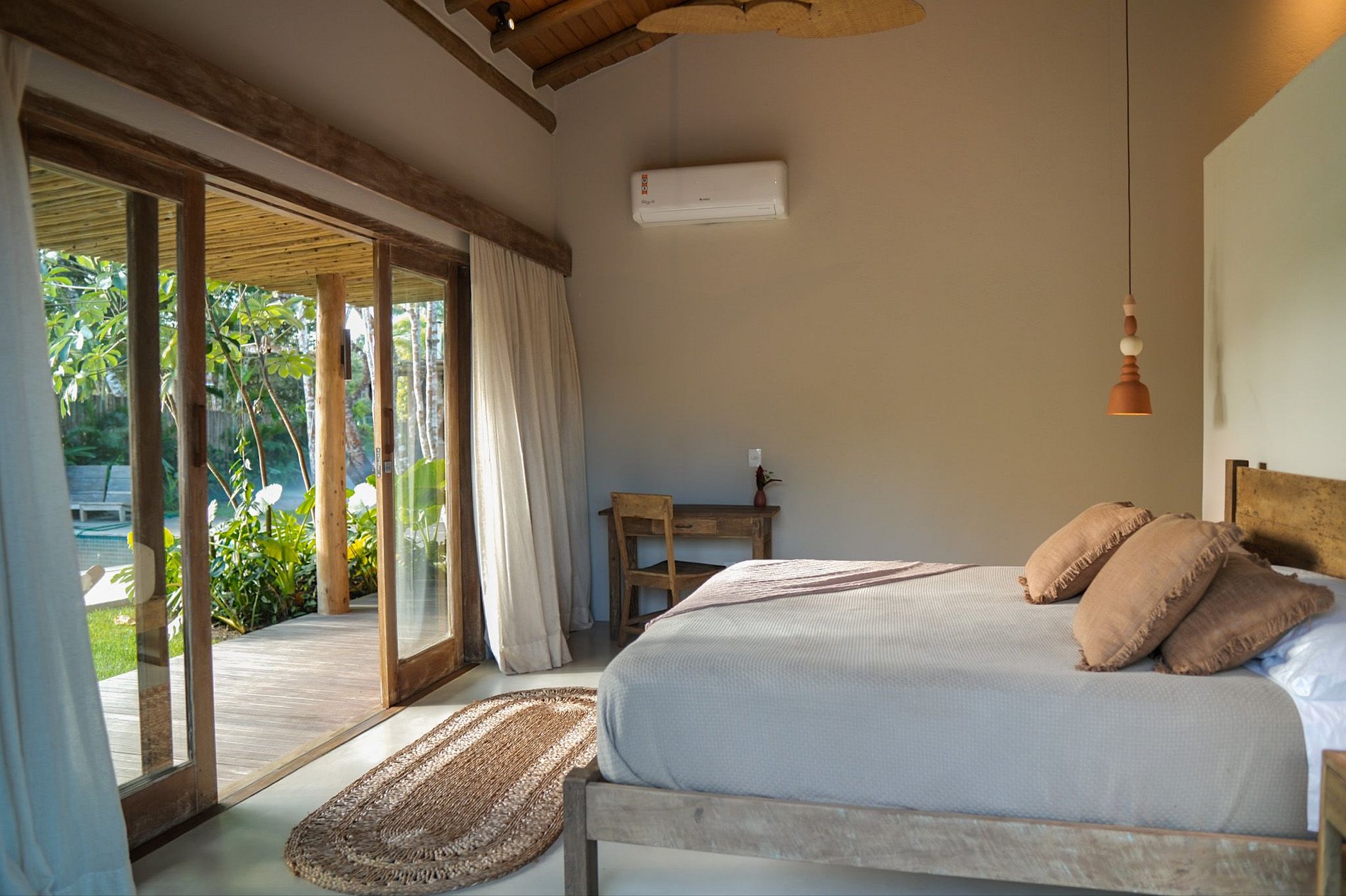 • Suíte 04: 01 Cama de casal king, cortinas com blackout, ar-condicionado e ventilador, mesa de trabalho, banheiro com jardim externo e com chuveiros interno e externo, varanda e jardim privativo.
