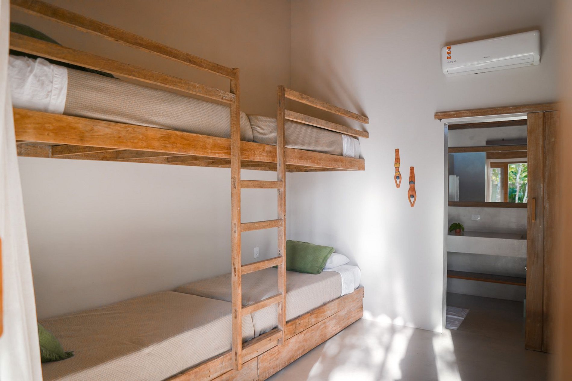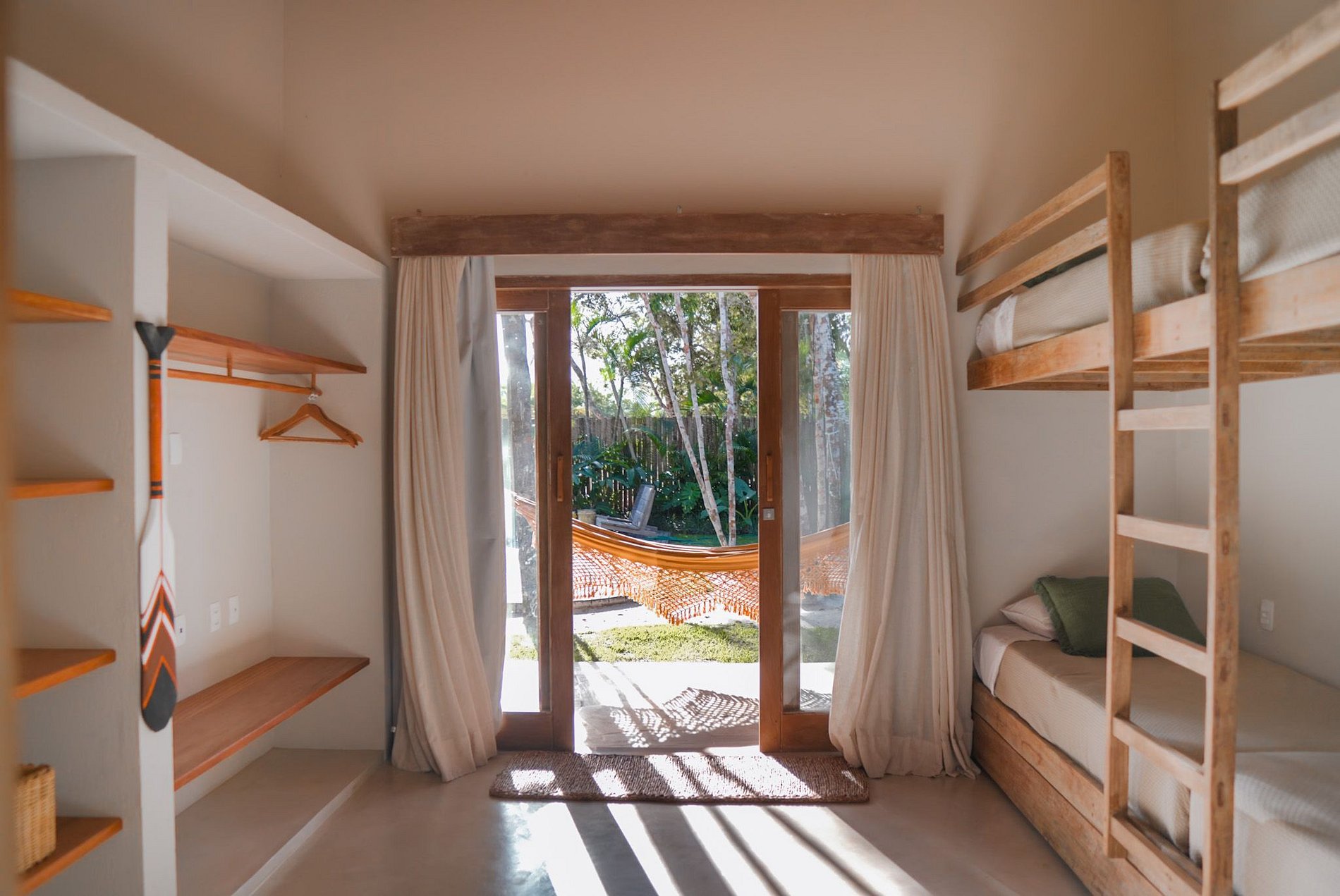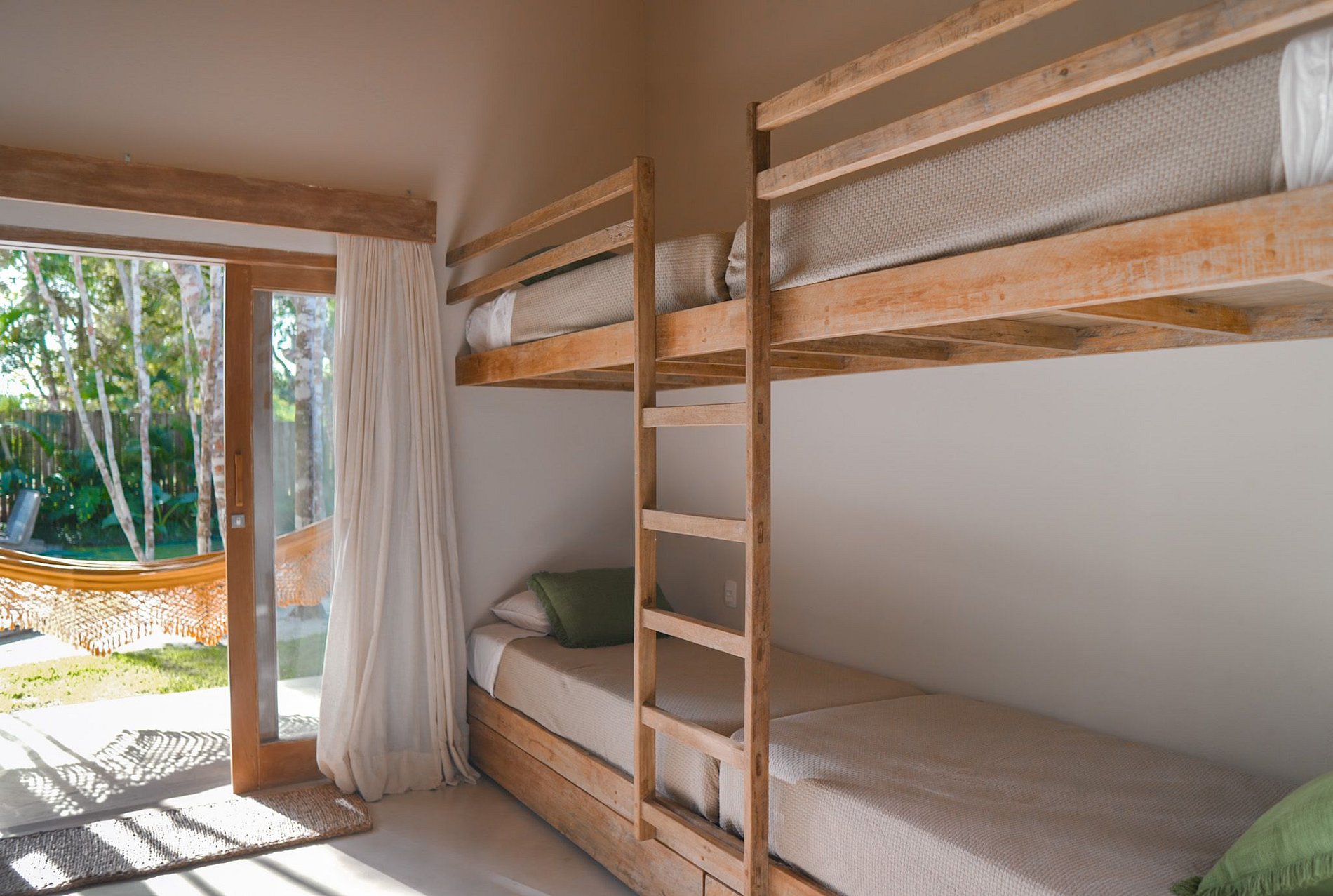 • Suíte 03: 02 Beliches de solteiro cortinas com blackout, ar-condicionado, banheiro com jardim externo e varanda