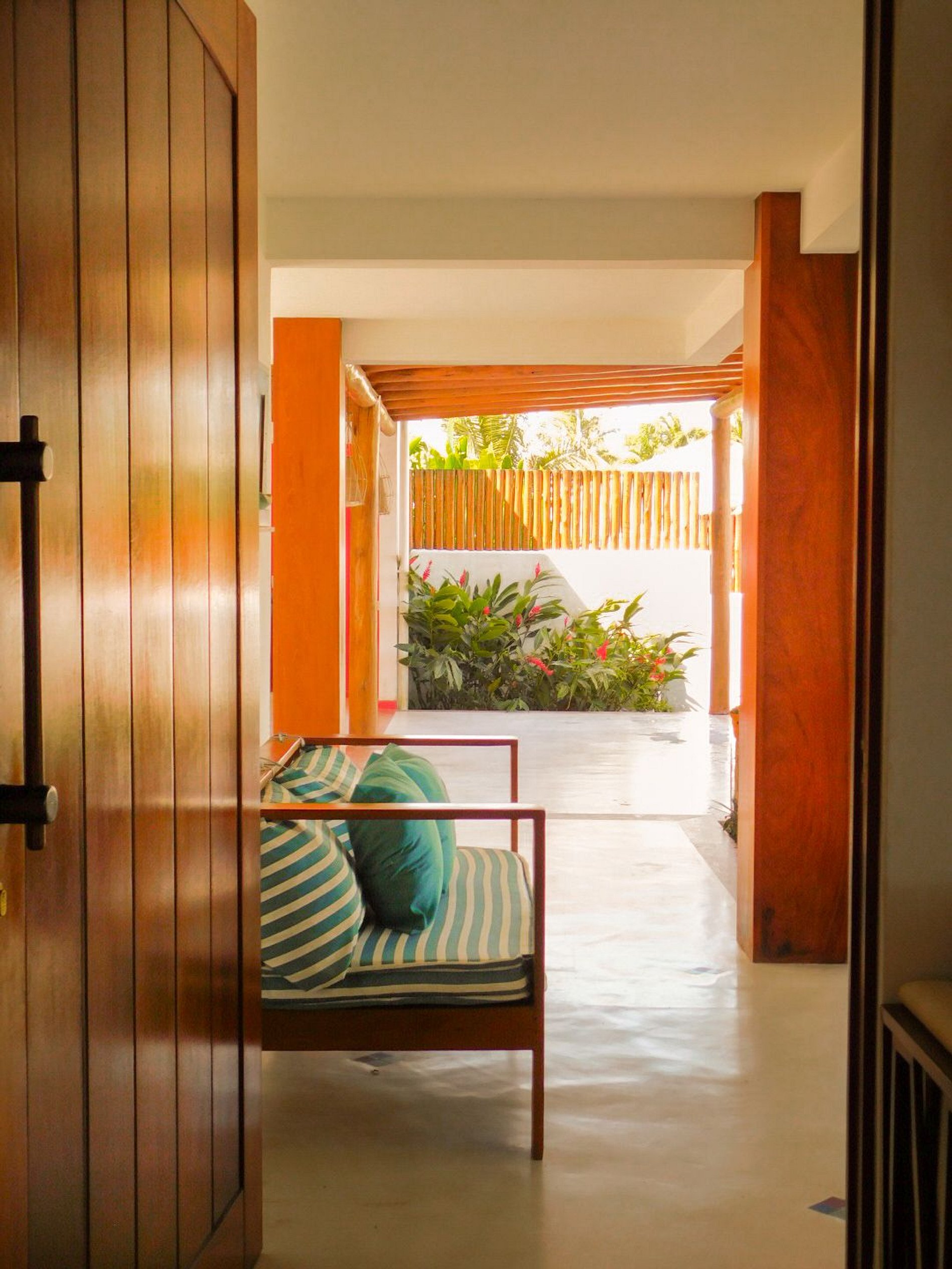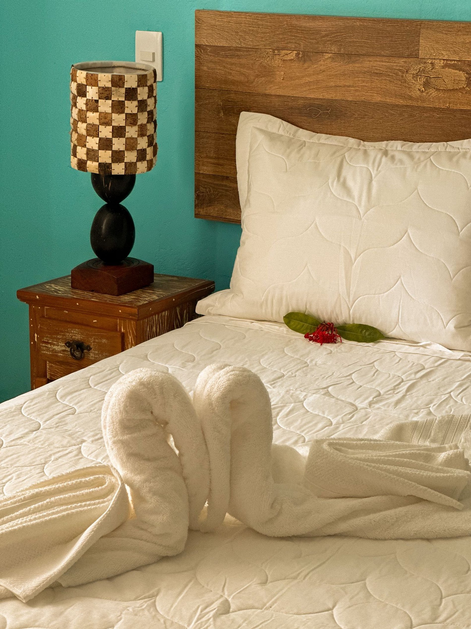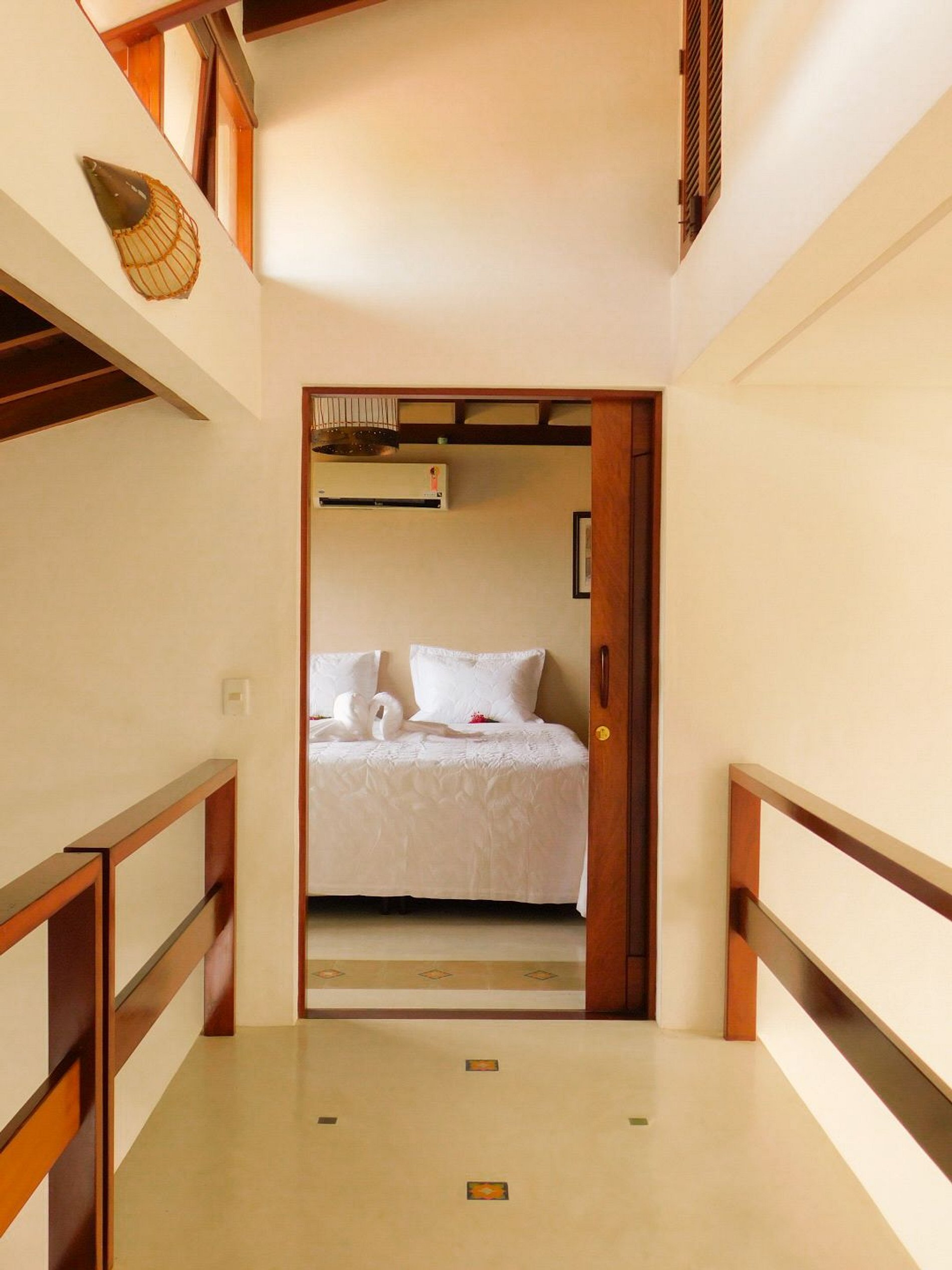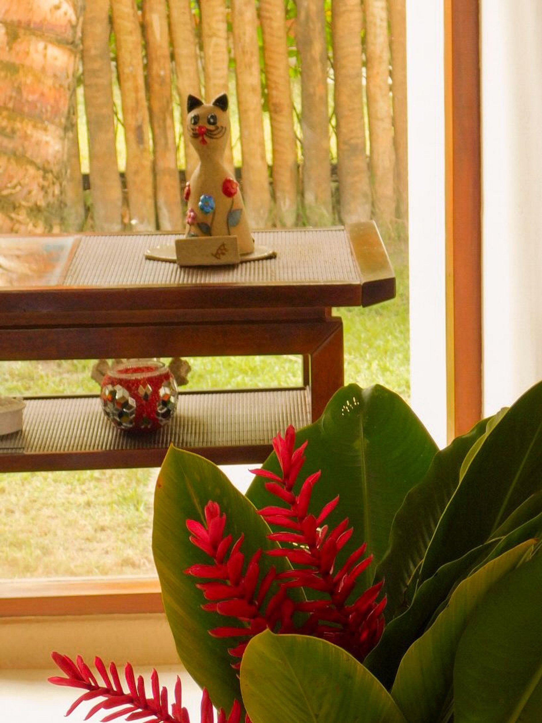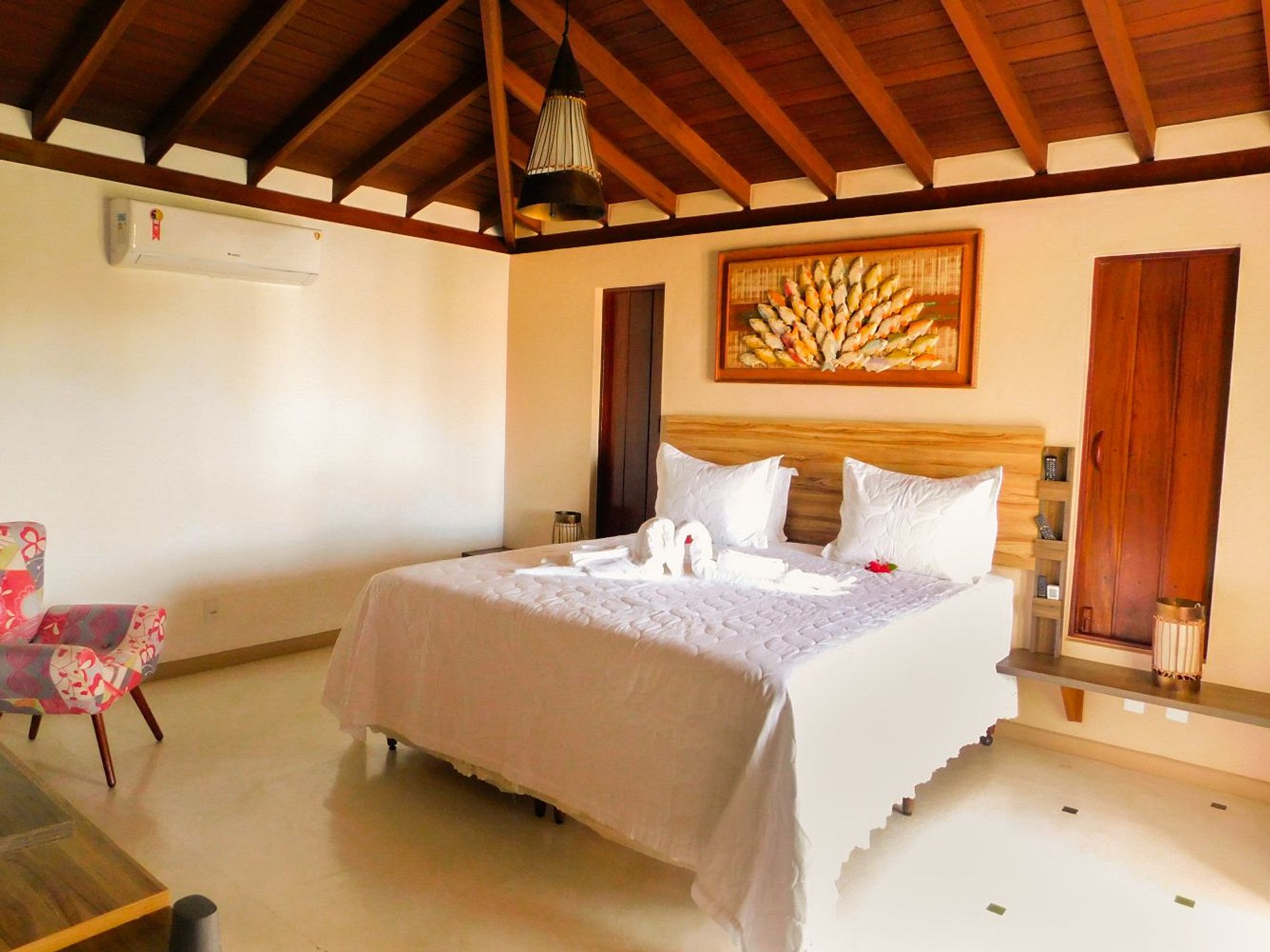 A casa acomoda confortavelmente até 6 pessoas em 3 suítes, todas com camas de casal, ar-condicionado e decoração que harmoniza conforto e simplicidade.