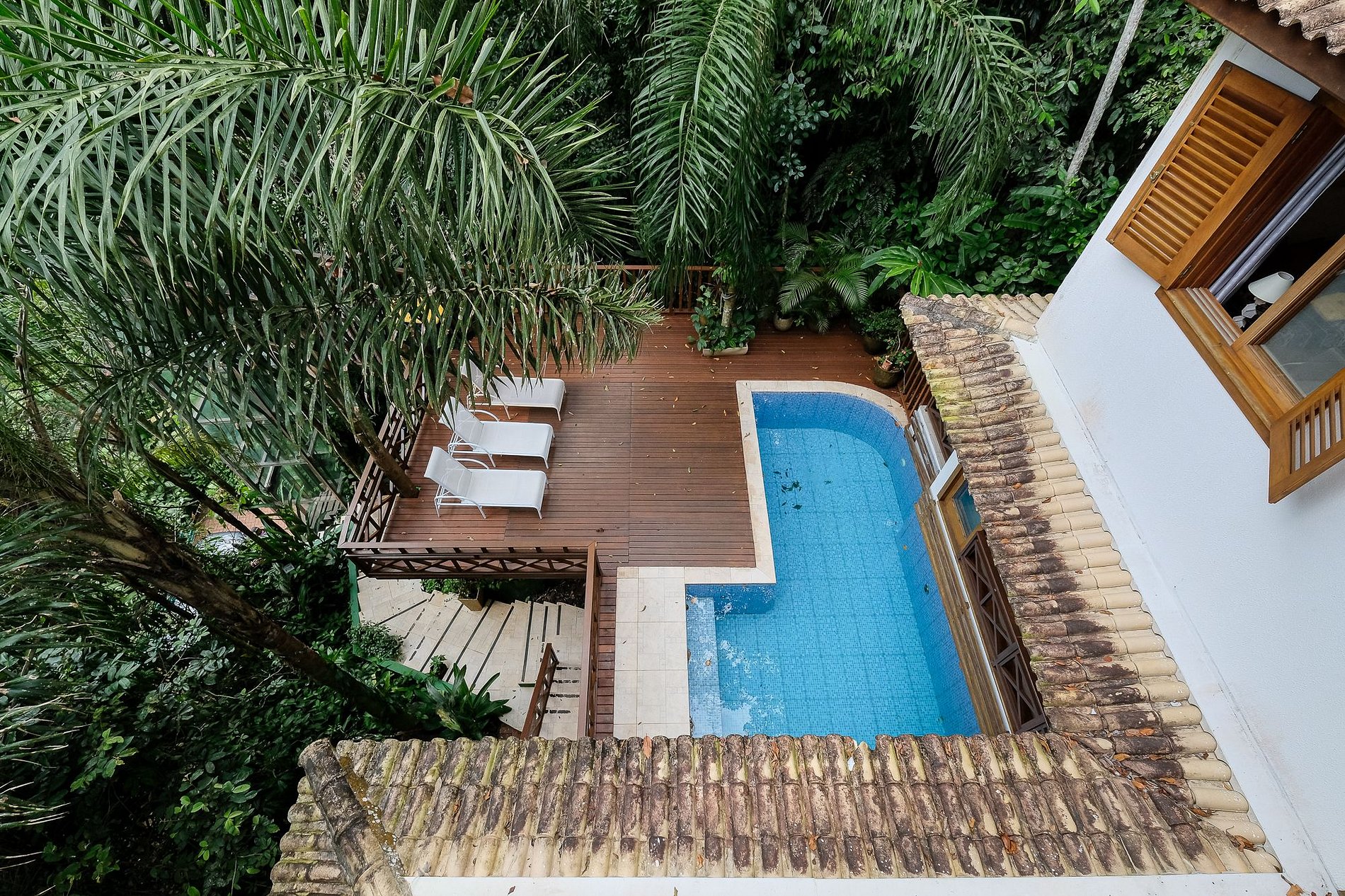 Emoldurada por uma mata exuberante, esta charmosa residência combina conforto, privacidade e contato direto com a natureza. A ampla área externa conta com uma piscina rodeada por deck de madeira e espreguiçadeiras, criando o cenário perfeito para momentos de descanso e lazer.