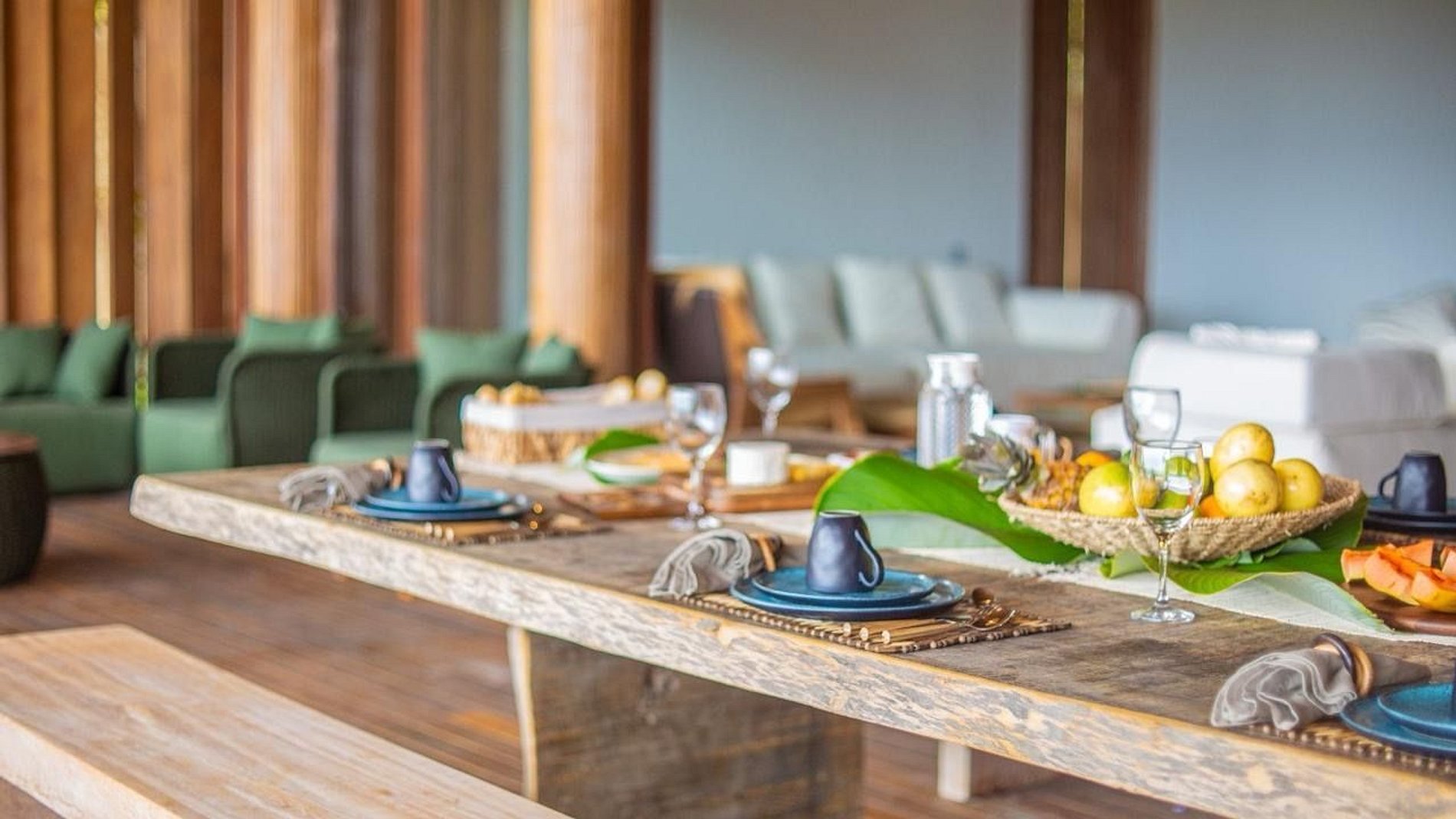 Com ambientes amplos, iluminados e arejados, a casa apresenta uma decoração praiana elegante, marcada por detalhes de extremo bom gosto. Sala de Estar: Sofás e poltronas aconchegantes compõem um espaço perfeito para confraternizações e momentos de relaxamento. Sala de Jantar: Uma ampla mesa com 12 lugares convida para refeições memoráveis entre amigos e família.