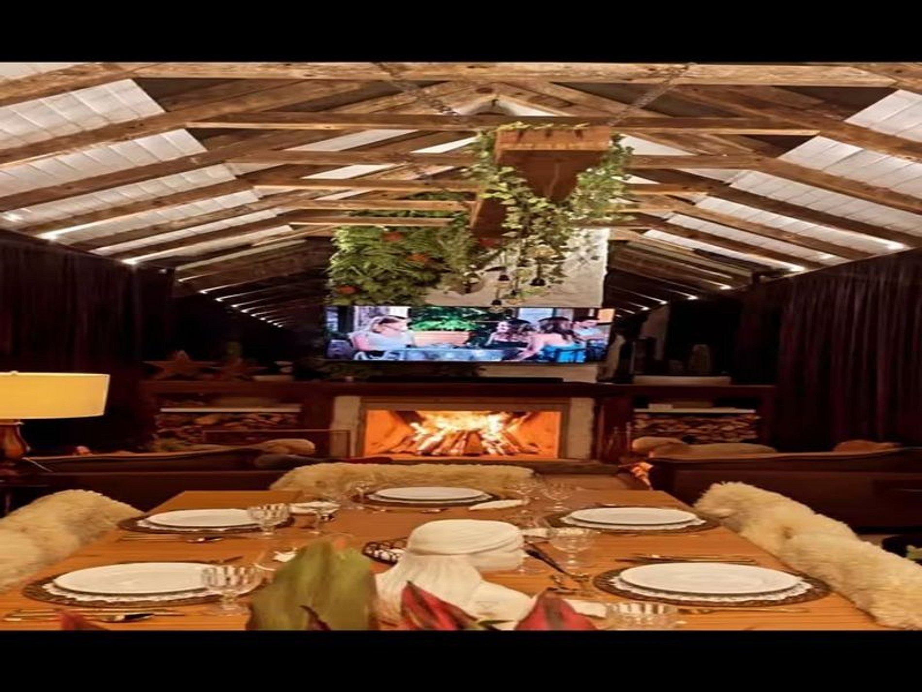 Os ambientes foram cuidadosamente preparados para unir conforto e praticidade. A sala principal convida ao convívio, equipada com lareira, sistema de som JBL e até mesmo uma pista de dança, perfeita para noites descontraídas. A sala de jantar, com mesa para até 12 pessoas, também conta com lareira e TV, criando uma atmosfera intimista para momentos especiais.