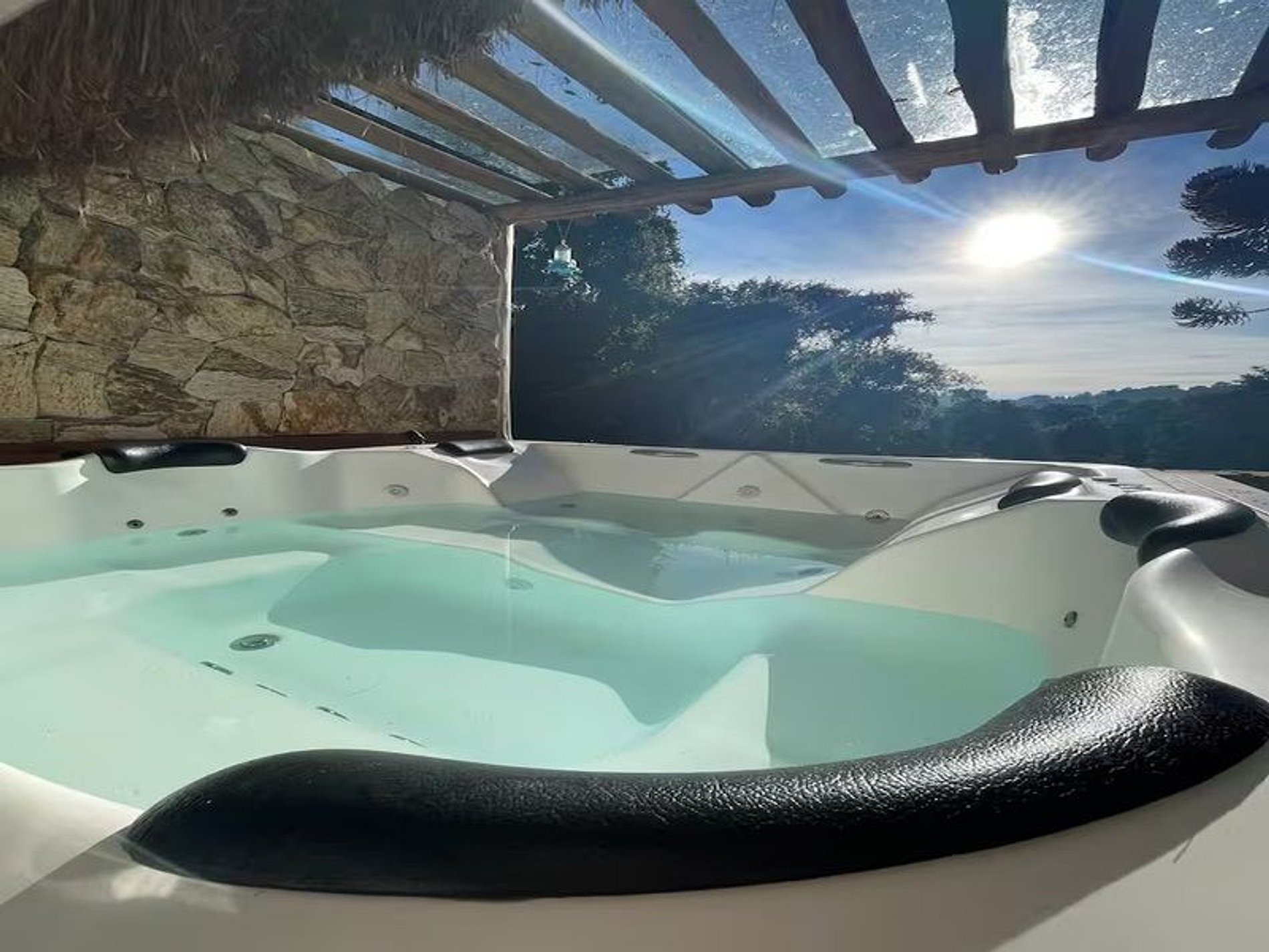 Na parte superior da casa, a jacuzzi aquecida a gás para até seis pessoas é o destaque, perfeita para apreciar o ar puro da serra em todas as estações. O espaço externo oferece ainda churrasqueira, área de jantar ao ar livre, móveis de jardim, rede e fogueira para noites aconchegantes sob o céu estrelado de Campos do Jordão.