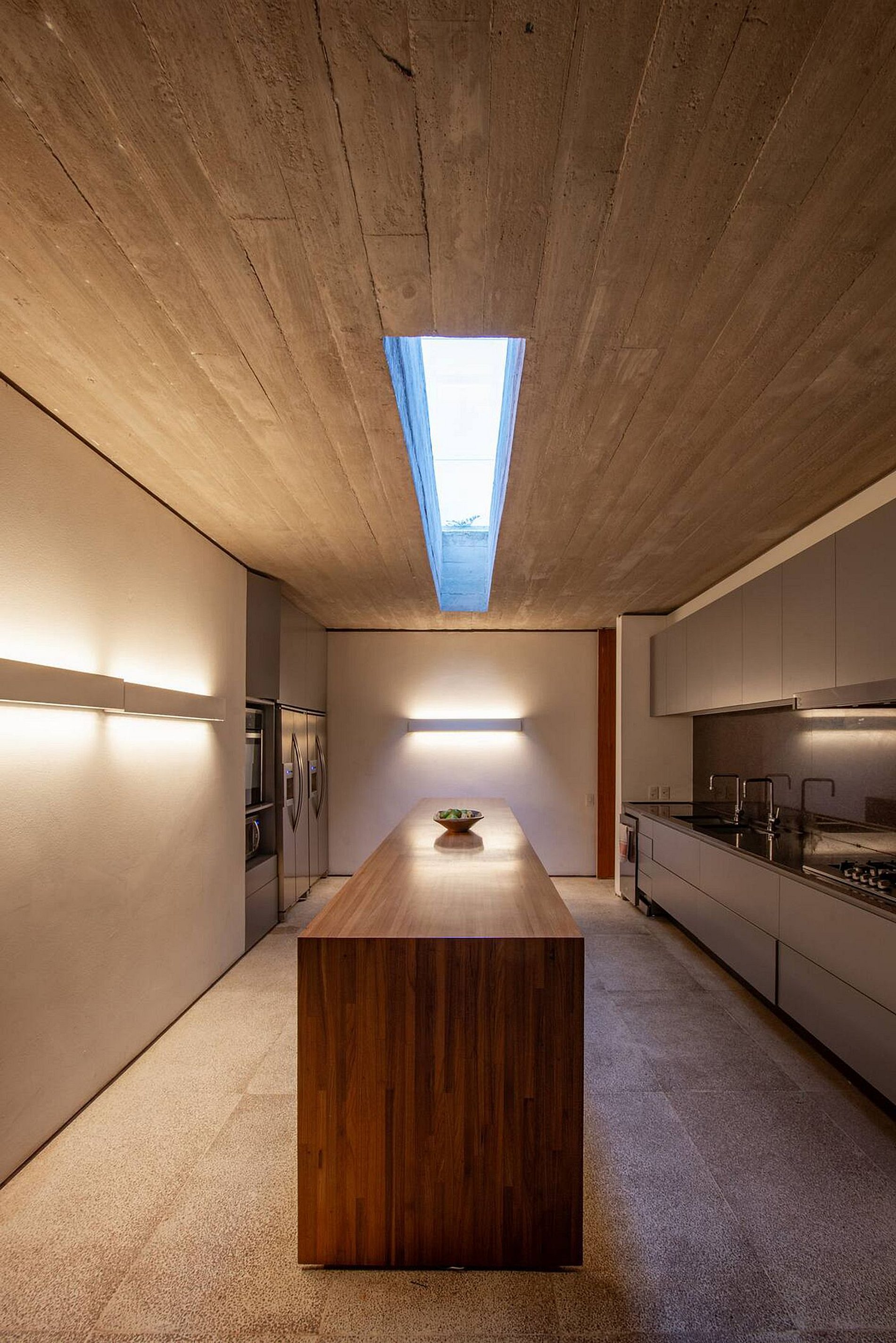 A casa dispõe de uma cozinha de ilha moderna com armários ID Design, além de área gourmet com churrasqueira e forno a lenha. Uma adega climatizada para 280 rótulos completa a experiência gastronômica.