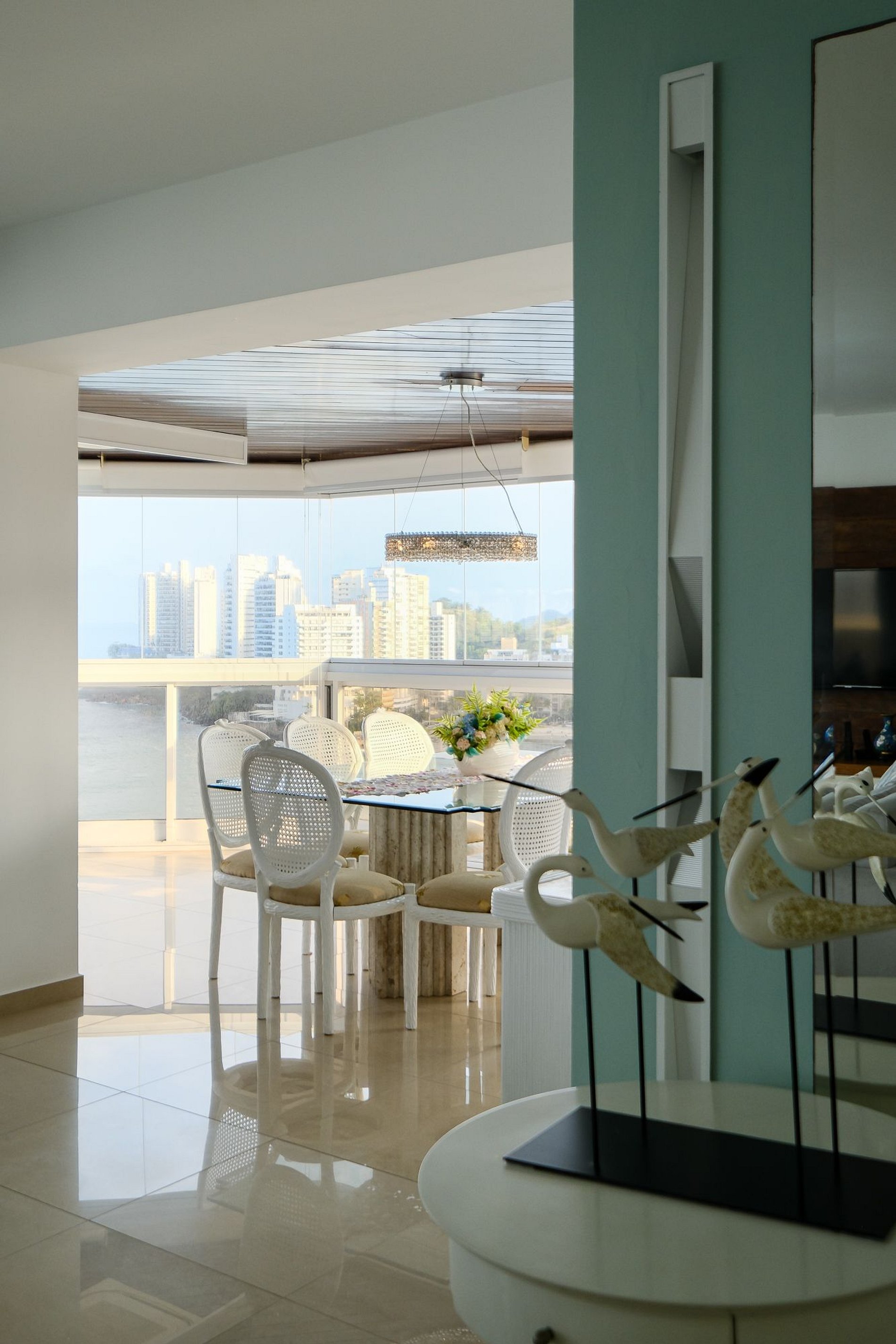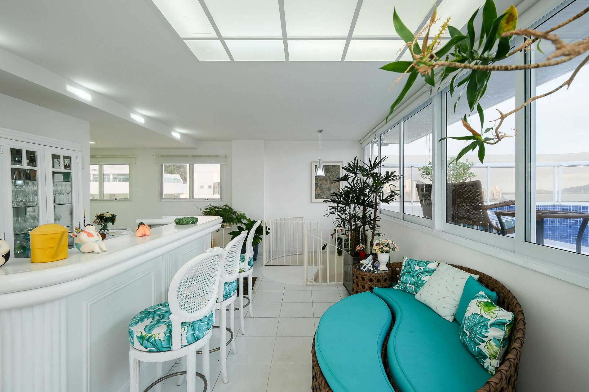 No interior, cada detalhe transmite sofisticação e aconchego. A sala de estar climatizada integra-se à sala de jantar envidraçada com vista panorâmica para o mar, criando um ambiente elegante e acolhedor. Um bar estiloso e o salão de jogos tornam o espaço perfeito tanto para receber convidados quanto para momentos de lazer em família. Toda a decoração foi pensada para criar uma atmosfera única, com enxoval de algodão egípcio 800 fios e móveis de alto padrão.