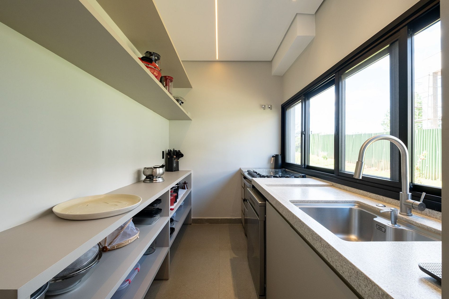 A cozinha é equipada com tudo o que se espera de uma residência de alto padrão: forno, fogão, micro-ondas, lava-louças, máquina de café expresso, Nespresso, Dolce Gusto e coador, torradeira, máquina de gelo, máquina de pão, chaleira elétrica, além de 3 geladeiras de 500L, 1 cervejeira grande, 2 cervejeiras adicionais, freezer e adega climatizada. A área gourmet integrada ainda conta com forno de pizza, churrasqueira fixa a carvão, utensílios completos, louças, taças de vinho e todos os eletrodomésticos necessários para receber em grande estilo.