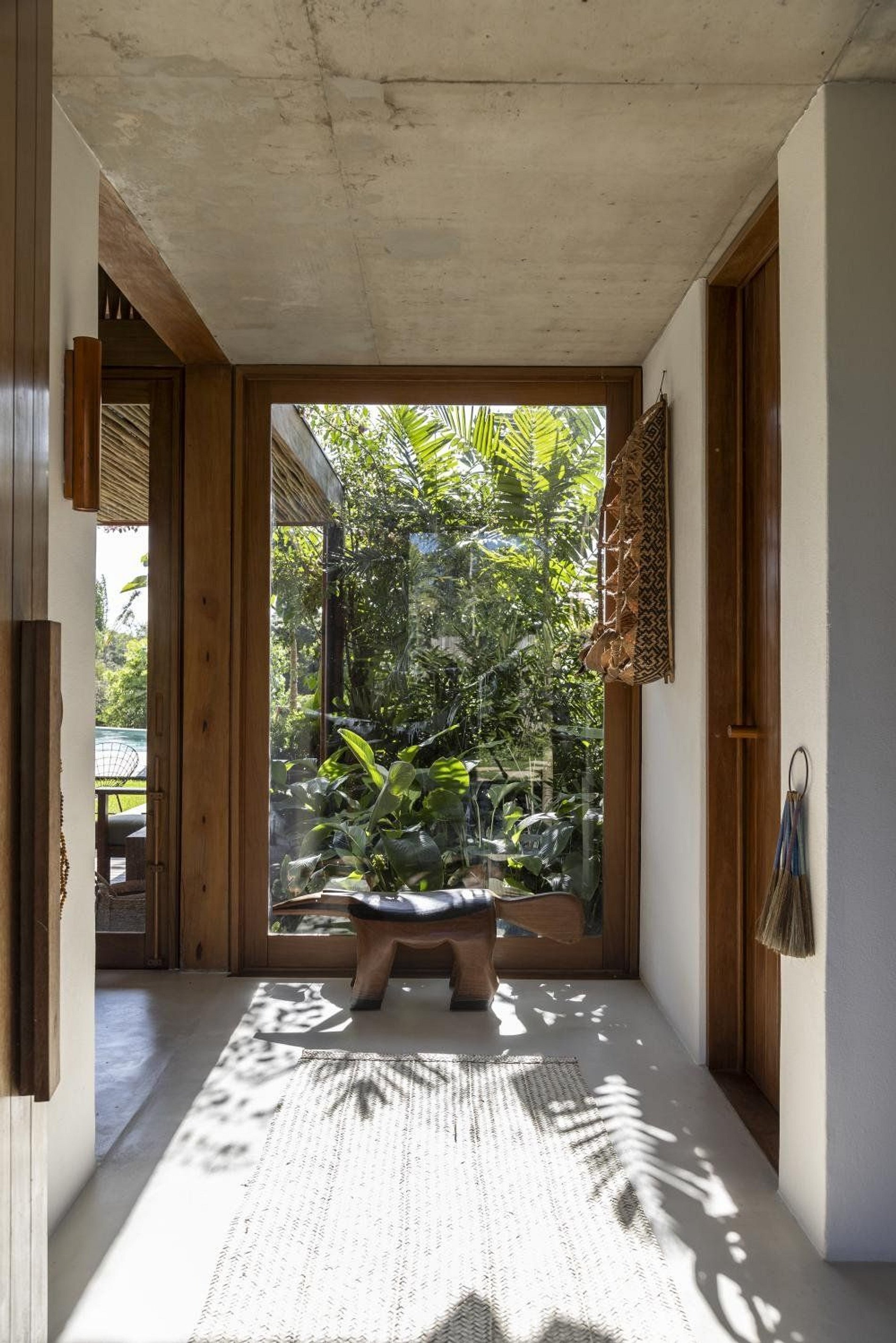 O jardim tropical é o grande destaque da propriedade — um espaço amplo, silencioso e repleto de verde, onde só se ouve o canto dos pássaros. A casa conta com uma piscina de borda infinita com vista para o vale, ducha externa e deck para observação das estrelas, criando um verdadeiro ambiente de spa a céu aberto.