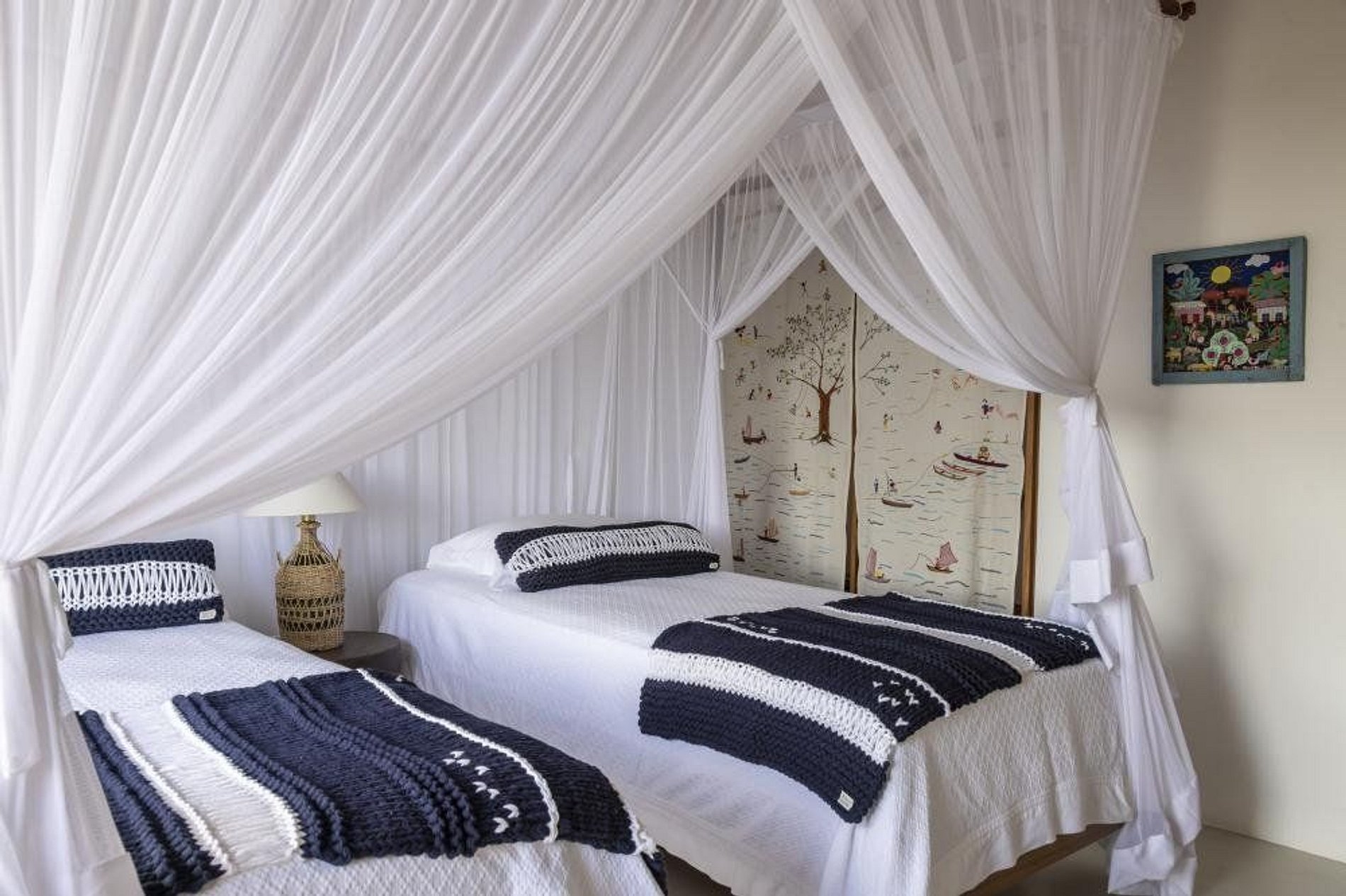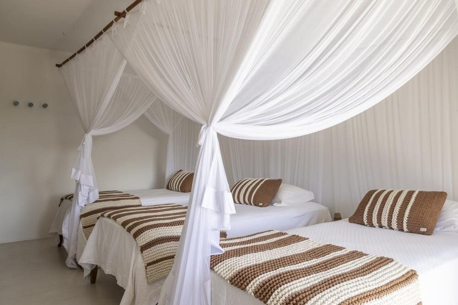 A casa acomoda confortavelmente até 12 hóspedes em 6 suítes + 1 suíte staff, todas decoradas com aconchego e sofisticação: