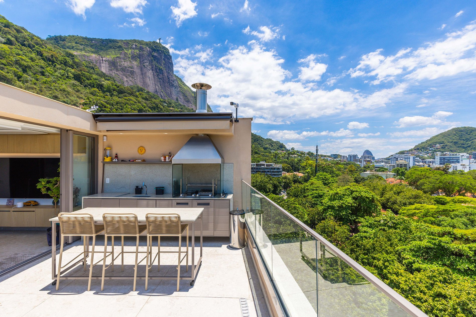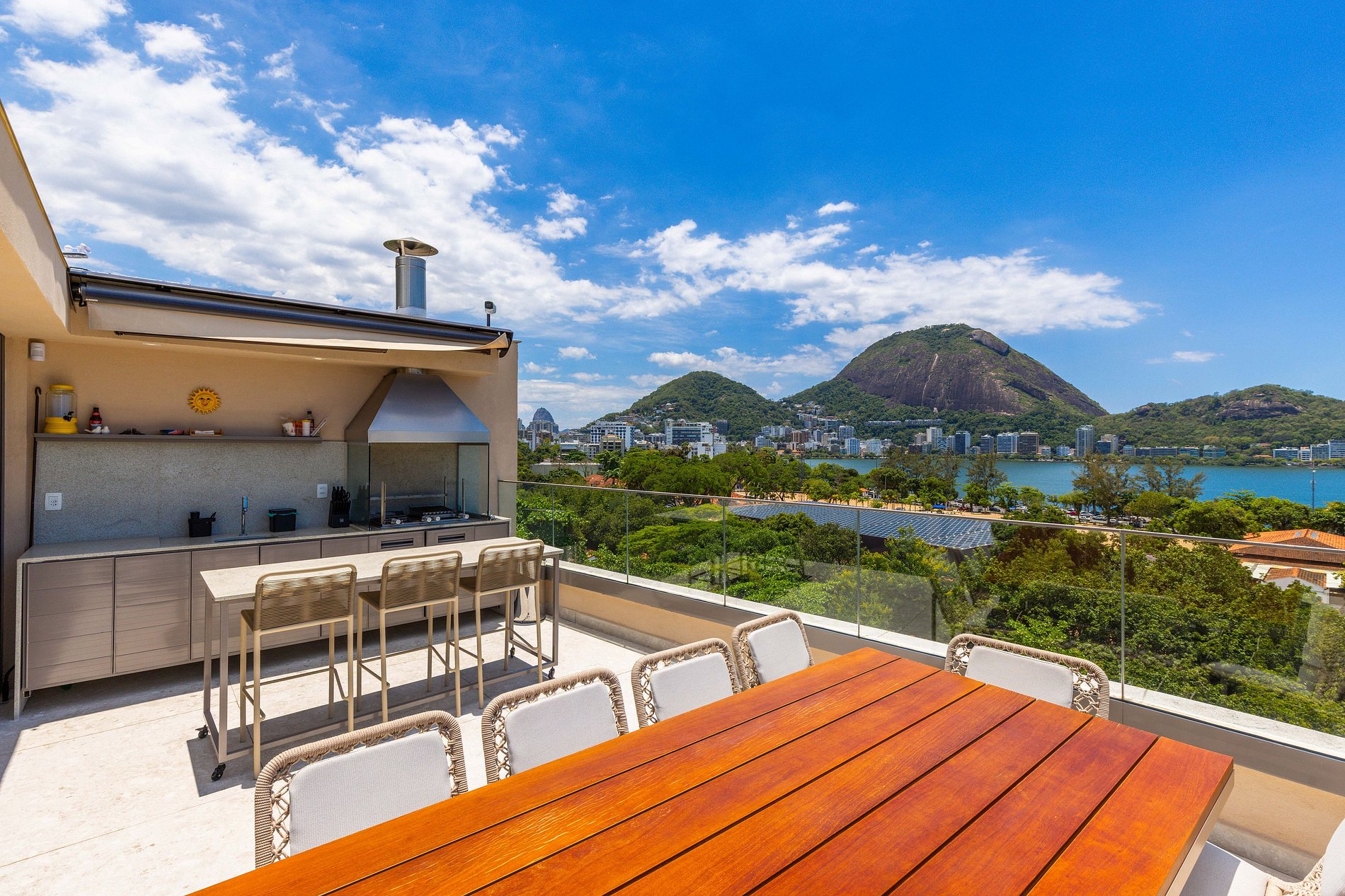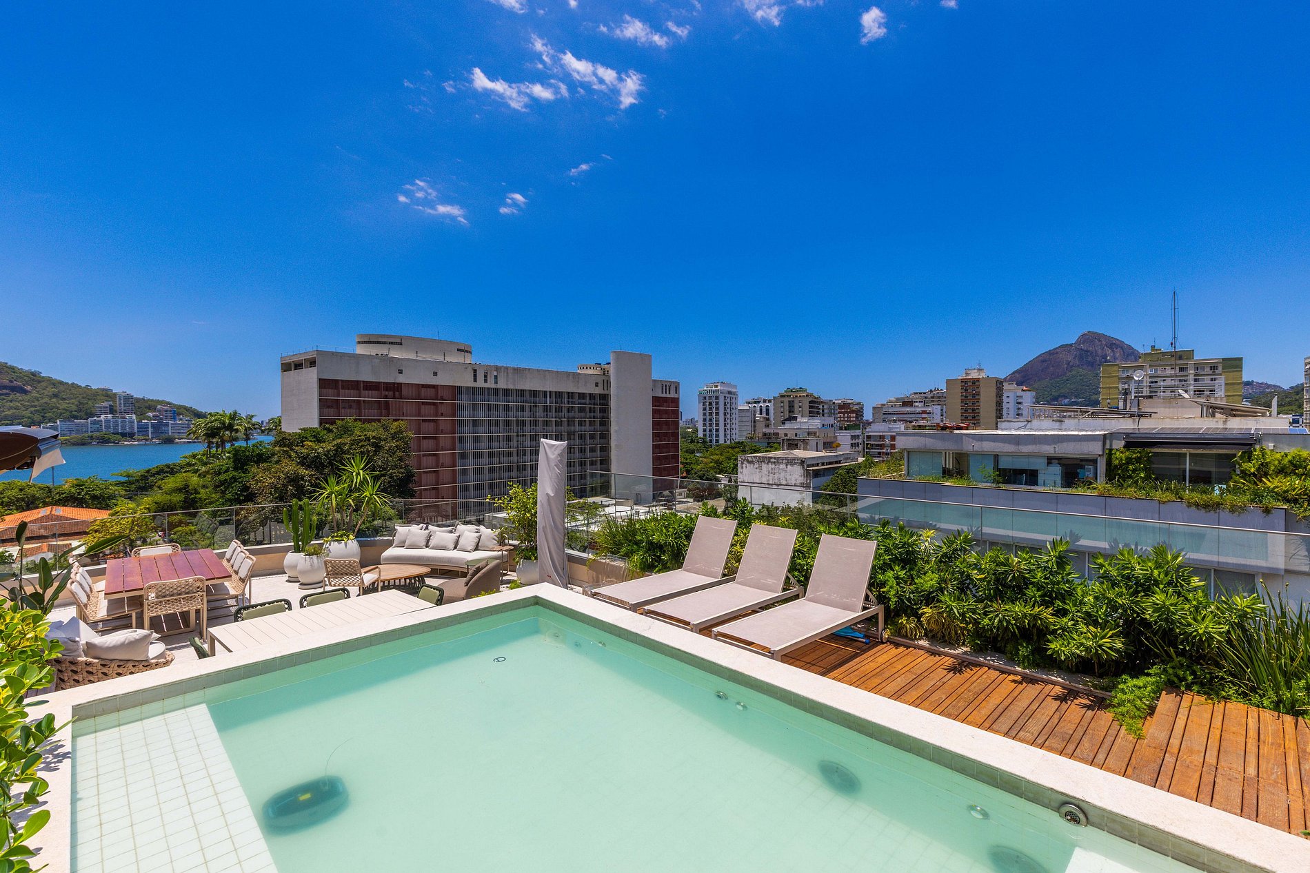 O grande destaque do apartamento é a vista privilegiada para a Lagoa e o Cristo Redentor, proporcionando uma experiência única de estar no Rio de Janeiro. A cobertura oferece um ambiente especial para relaxar e apreciar a paisagem.