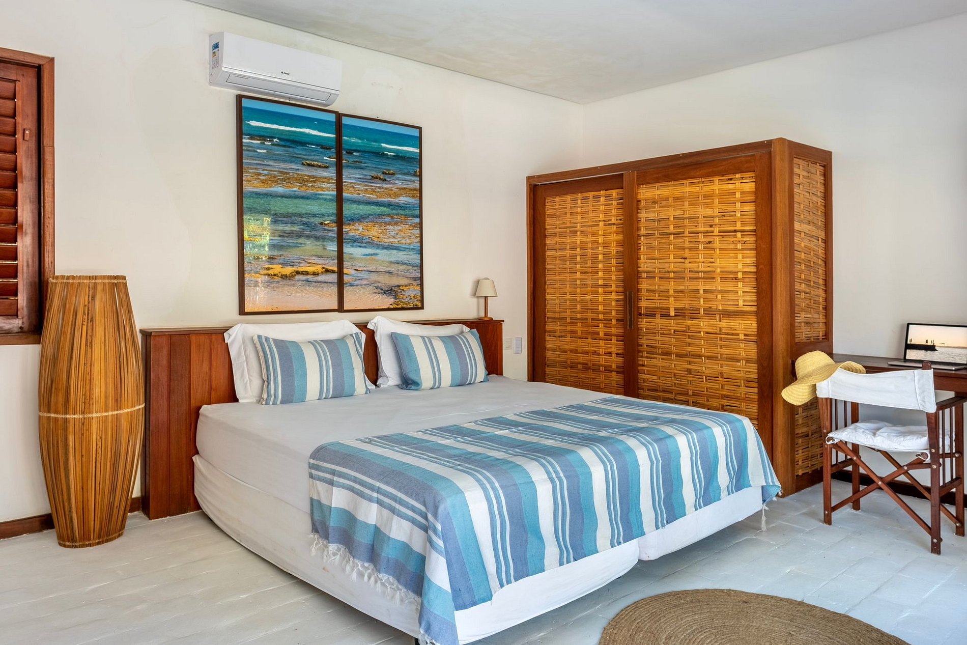A casa possui uma arquitetura única, que privilegia a integração de todos os seus cômodos, salas, cozinha, e quartos ao seu belíssimo jardim, piscina, e à alameda da praia. Além disso, é decorada com muito charme e bom gosto, com elementos naturais da região e nas suítes as roupas de cama são de 400 fios.