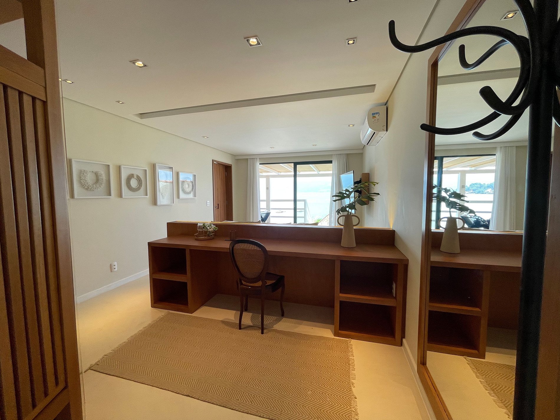 Ambientes arejados e bem iluminados; grandes portas e janelões dão acesso à varanda e à área externa. Bela decoração no estilo praiano com móveis modernos e confortáveis.