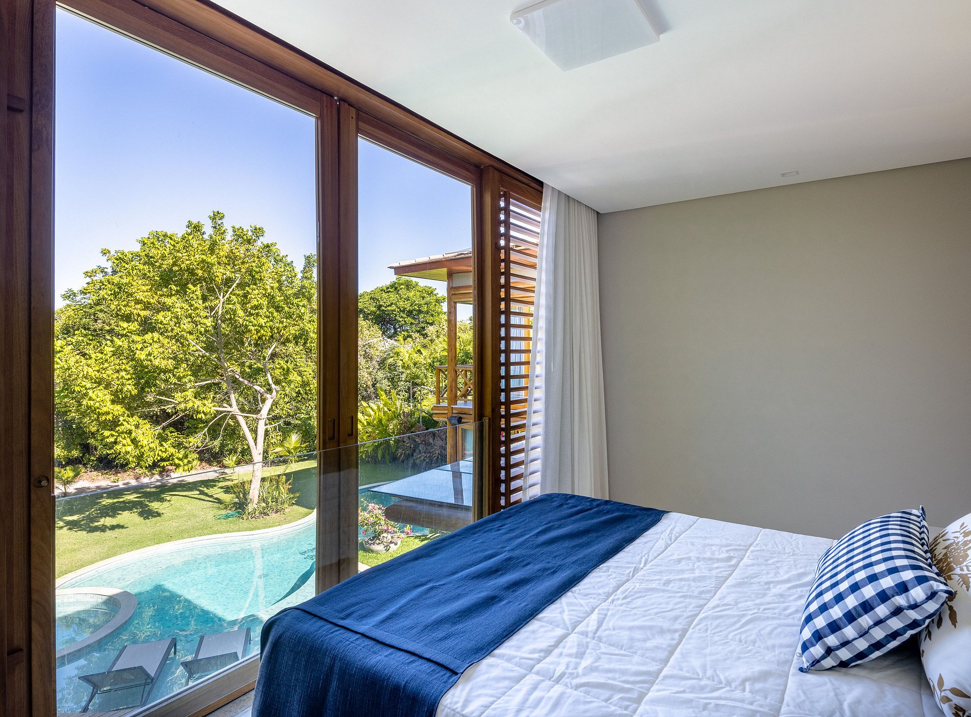 Grandes espaços abertos e bem iluminados, elegantemente decorados, com portas amplas que dão acesso à área externa. Sala de jantar em ambiente com pé direito duplo. Living climatizado, com smart tv, amplo sofá e mesa de sinuca. Ambientes decorados com requinte agregando elegância e conforto aos espaços.