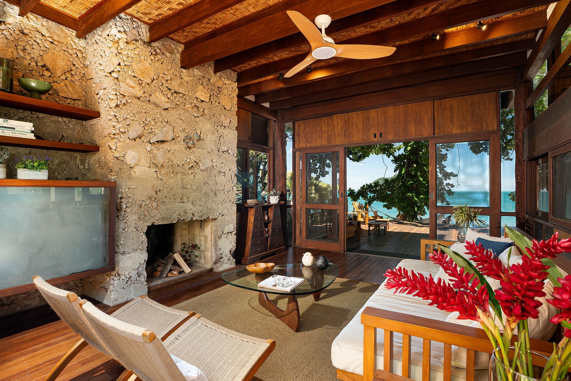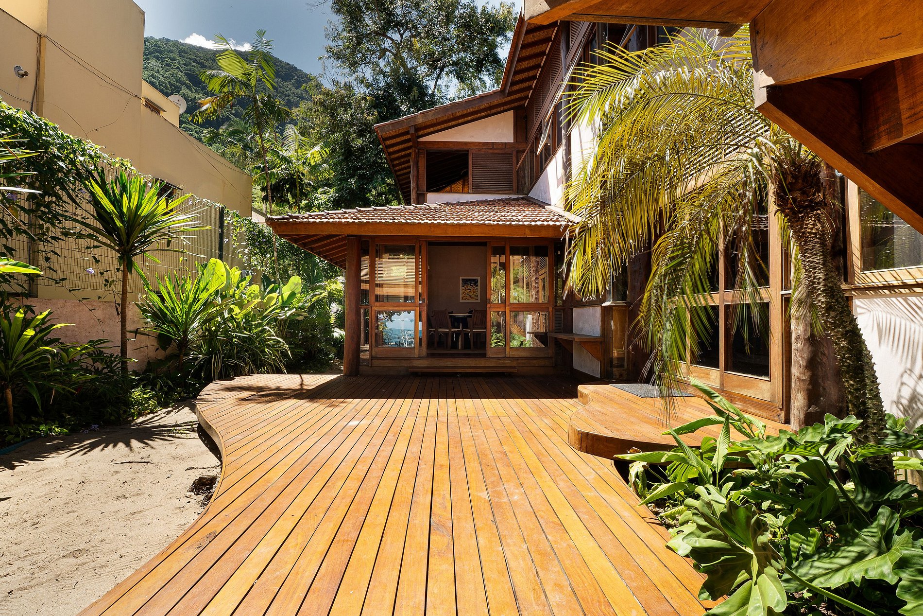 A área externa é um verdadeiro refúgio: deck de madeira com piscina frente ao mar, ideal para momentos de lazer e contemplação. Conta ainda com dependência de empregada reversível e 3 vagas de garagem.