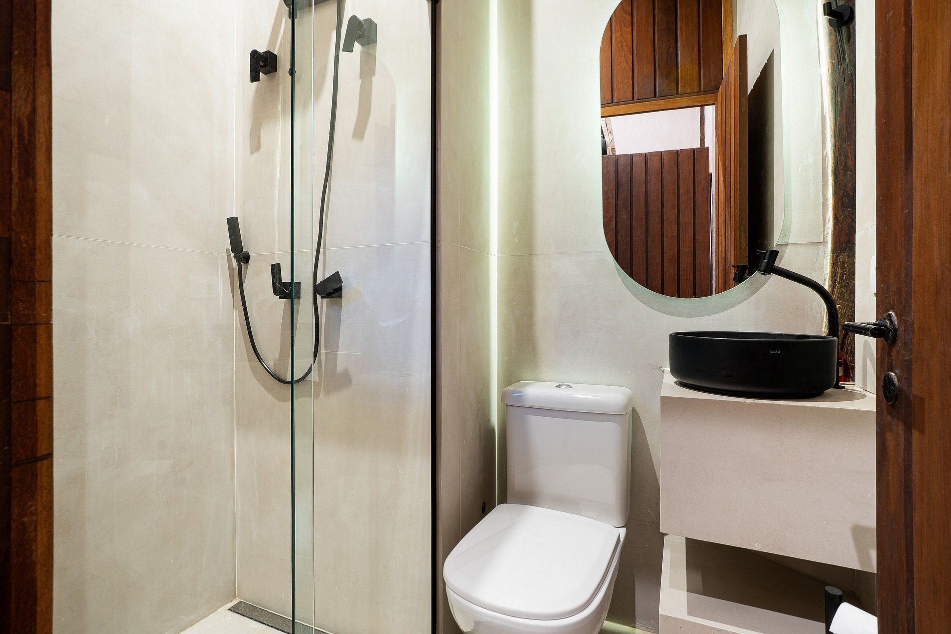 São 5 dormitórios amplos, sendo 3 suítes com deslumbrante vista para o mar, além de 2 quartos com banheiro compartilhado por um projeto inteligente (divisão entre banho, sanitário e lavatório). O mezanino abriga uma charmosa sala íntima de TV e estar, enquanto o andar térreo oferece um espaçoso living com 3 ambientes, sala de estar, jantar, cozinha ampla e lavabo.