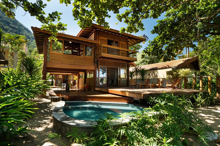 A área externa é um verdadeiro refúgio: deck de madeira com piscina frente ao mar, ideal para momentos de lazer e contemplação. Conta ainda com dependência de empregada reversível e 3 vagas de garagem.