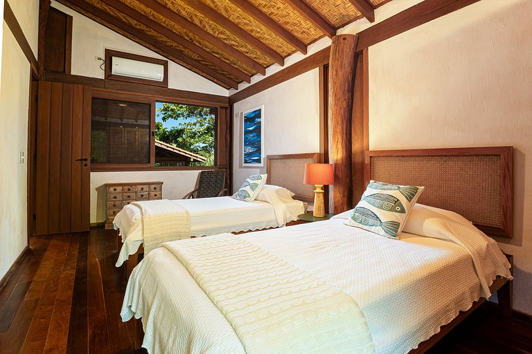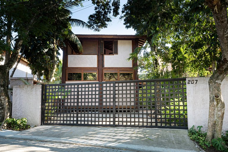 Descubra o privilégio de viver em uma casa exclusiva, projetada pelo renomado arquiteto paulista Marcos Acayaba, referência em arquitetura orgânica e sustentável. Com estrutura elevada em imponentes pilares de aroeira, a residência favorece a ventilação natural e integra-se harmoniosamente ao ambiente, unindo conforto, natureza e sofisticação.