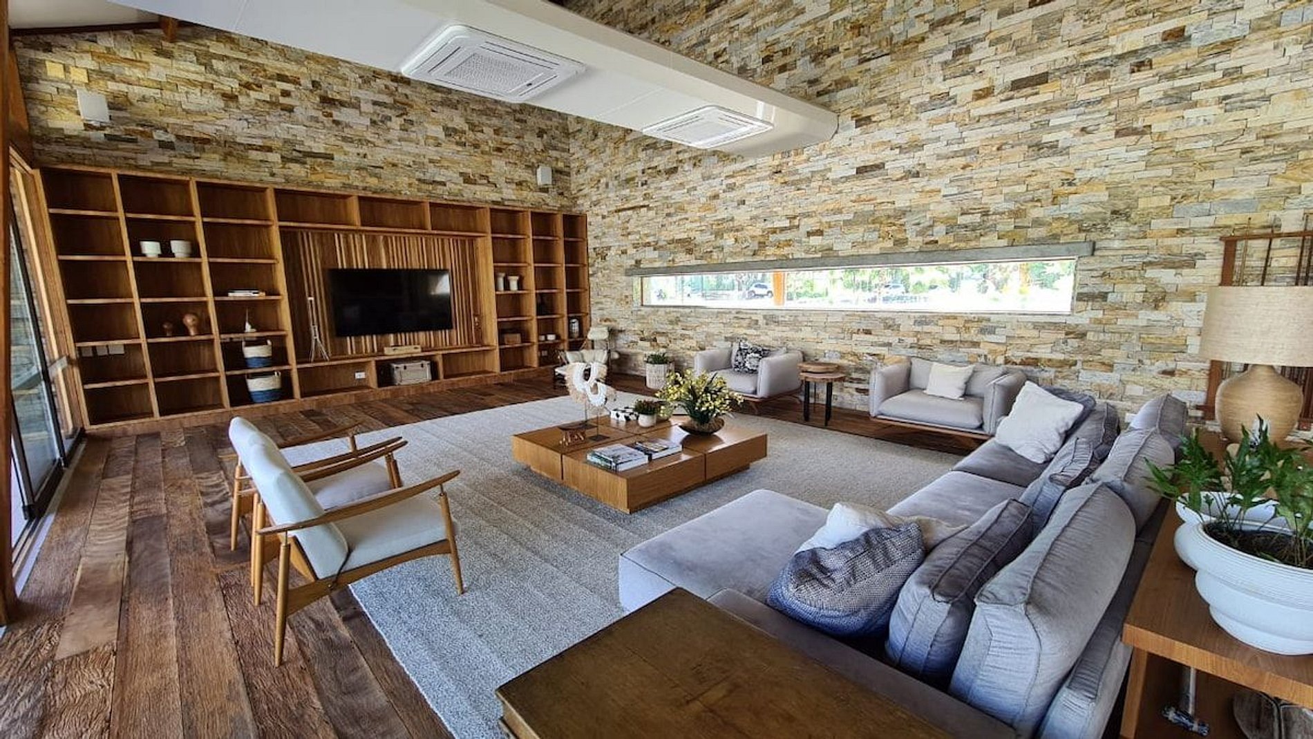 Casa com 7 quartos, dependência de empregada, cozinha completa, 2 TVs (1 na sala principal e outra na sala de TV para crianças), amplo terraço, saleta em frente ao deck, churrasqueira portátil e muito mais. A casa fica localizada em Paraty, estando de frente para uma marina, próxima à Praia das Laranjeiras e à Praia da Fazenda, destinos que merecem ser visitados por todo viajante que adora trilhas e aventuras entre o mar e as cachoeiras. Área comum do condomínio conta com piscina Não estaremos presentes pessoalmente, mas ficaremos à disposição 24 horas por dia através do celular. Fica em condomínio fechado Informações relevantes: - Certifique-se de que o número de hóspedes e o período de sua estadia estejam corretos, pois os valores podem variar de acordo com estas informações; - Os valores informados podem sofrer alteração sem aviso prévio. Por favor, confirme antes de efetivar sua reserva; Custos adicionais e serviços de concierge: - Para o funcionamento da propriedade, é obrigatória a contratação de funcionários. O número de funcionários depende do número de hóspedes (valores sob consulta); - Para seu maior conforto, você poderá contratar à parte o serviço de auxílio de sugestão do cardápio e a execução das compras de supermercado, assim, quando chegarem na casa, já haverá suprimentos para uso (valor sob consulta); Regras da casa: - Não é permitida a realização de eventos (almoço, jantar, happy hour, churrasco, entre outros) para pessoas que não foram mencionadas na reserva; - Multas ocasionadas pelo não cumprimento de regras do condomínio serão cobradas após notificação da administração; - Esta propriedade não aceita pets; - É proibido acender fogueiras na propriedade. IMPORTANTE! É obrigatório o envio das seguintes informações até 48h antes do check in: 1. Nome Completo e Nº do CPF de todos os hóspedes ou Nº do Passaporte para estrangeiros (no caso de crianças que não tem CPF nome completo e qual seu responsável) e cópias dos documentos. 2. Modelo do veículo, cor e placa. O não cumprimento desta regra acarretará no bloqueio da entrada na propriedade.