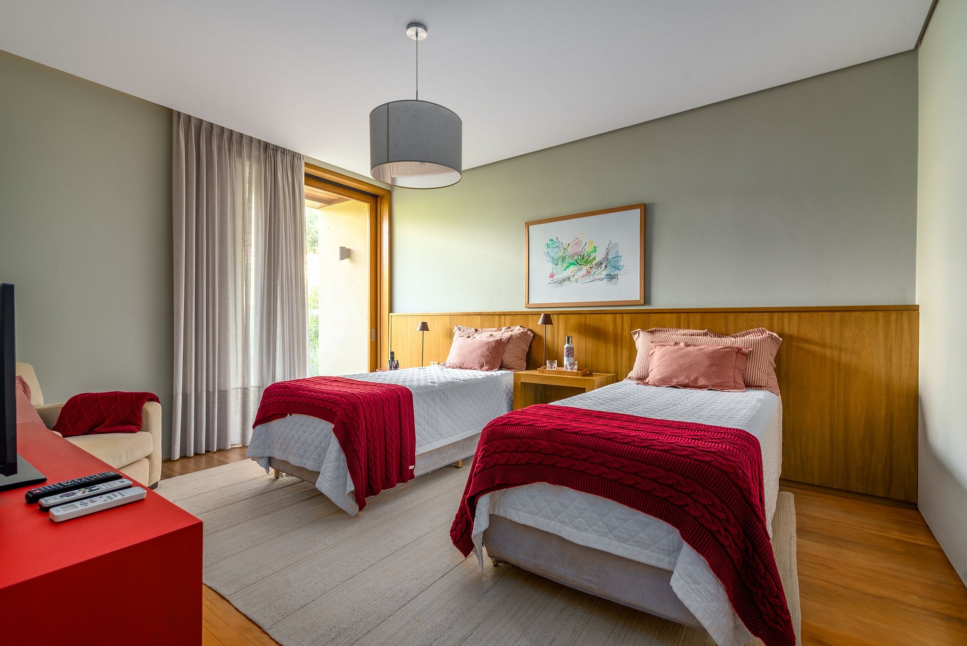 Brinquedoteca e amplo jardim com vista deslumbrante para a mata.
