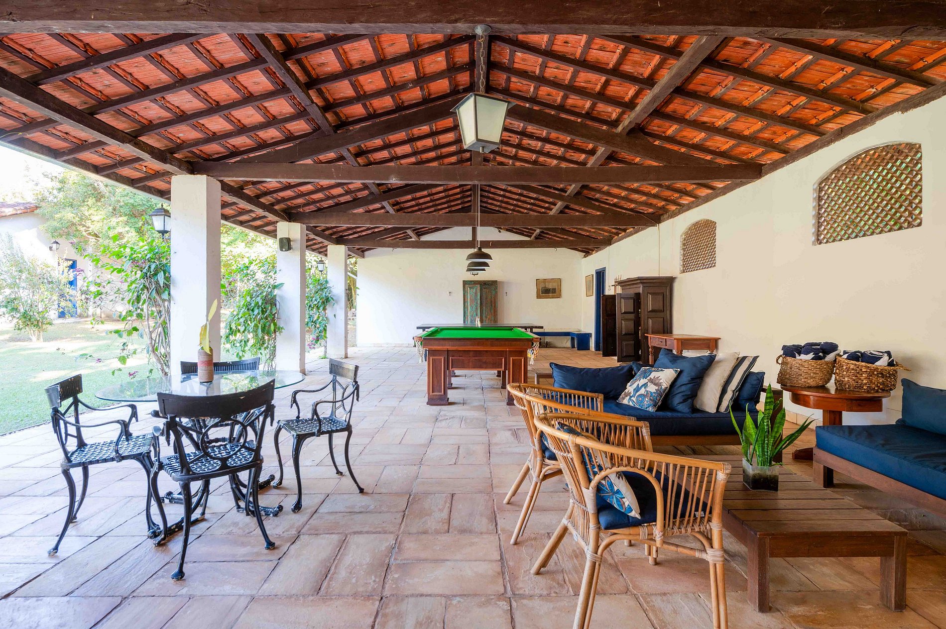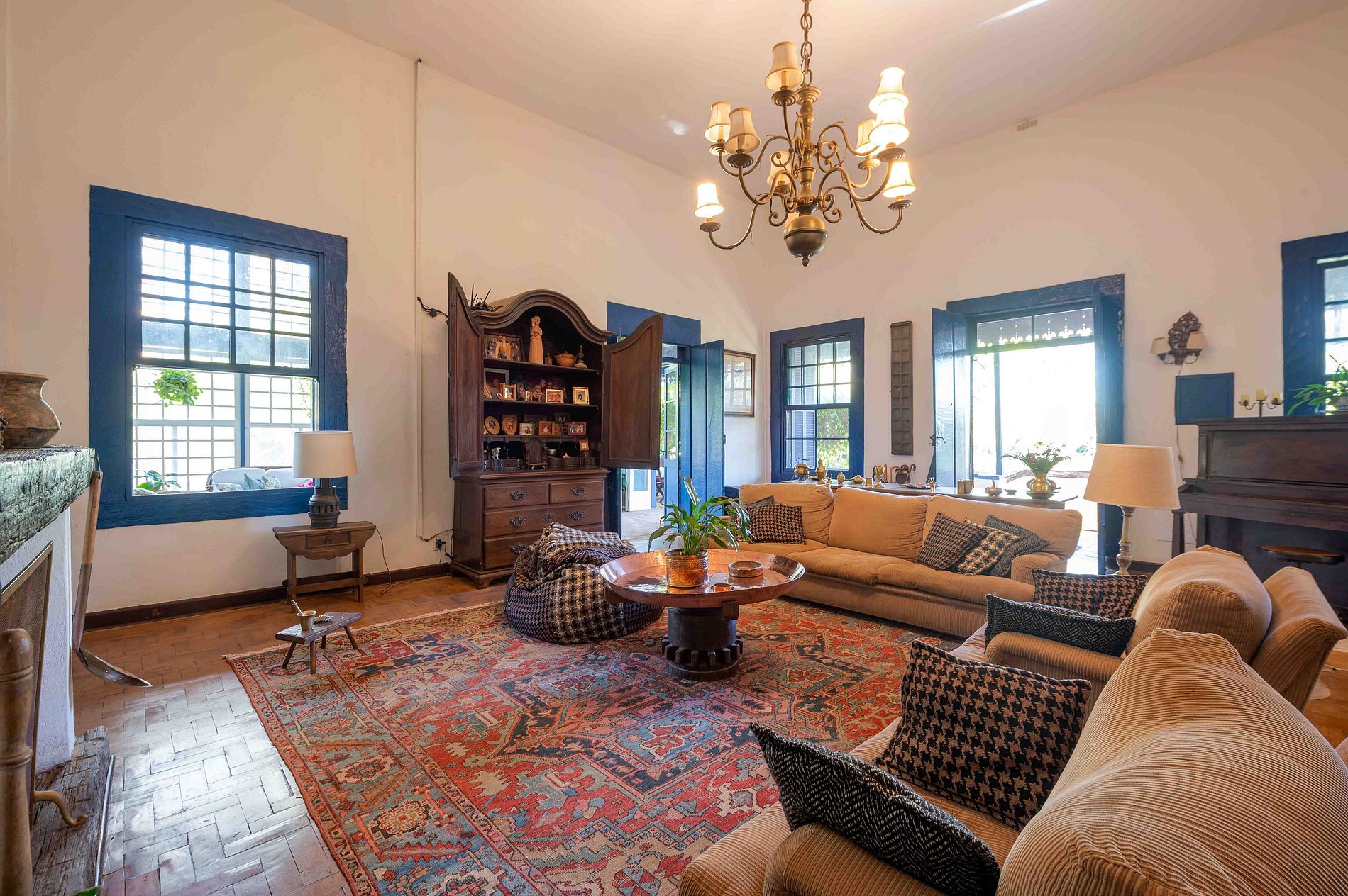 A sede, com mais de 150 anos de história, é uma construção colonial impecavelmente preservada, com 450m² de área total. Os ambientes foram pensados para proporcionar conforto e momentos de convivência inesquecíveis: ampla sala de jantar com duas mesas – uma para 12 lugares e outra redonda para 4 pessoas – sala de visitas com lareira e sofás, terraço fechado com mesa de snooker, saleta de TV e terraço na fachada principal, perfeito para contemplar a paisagem.