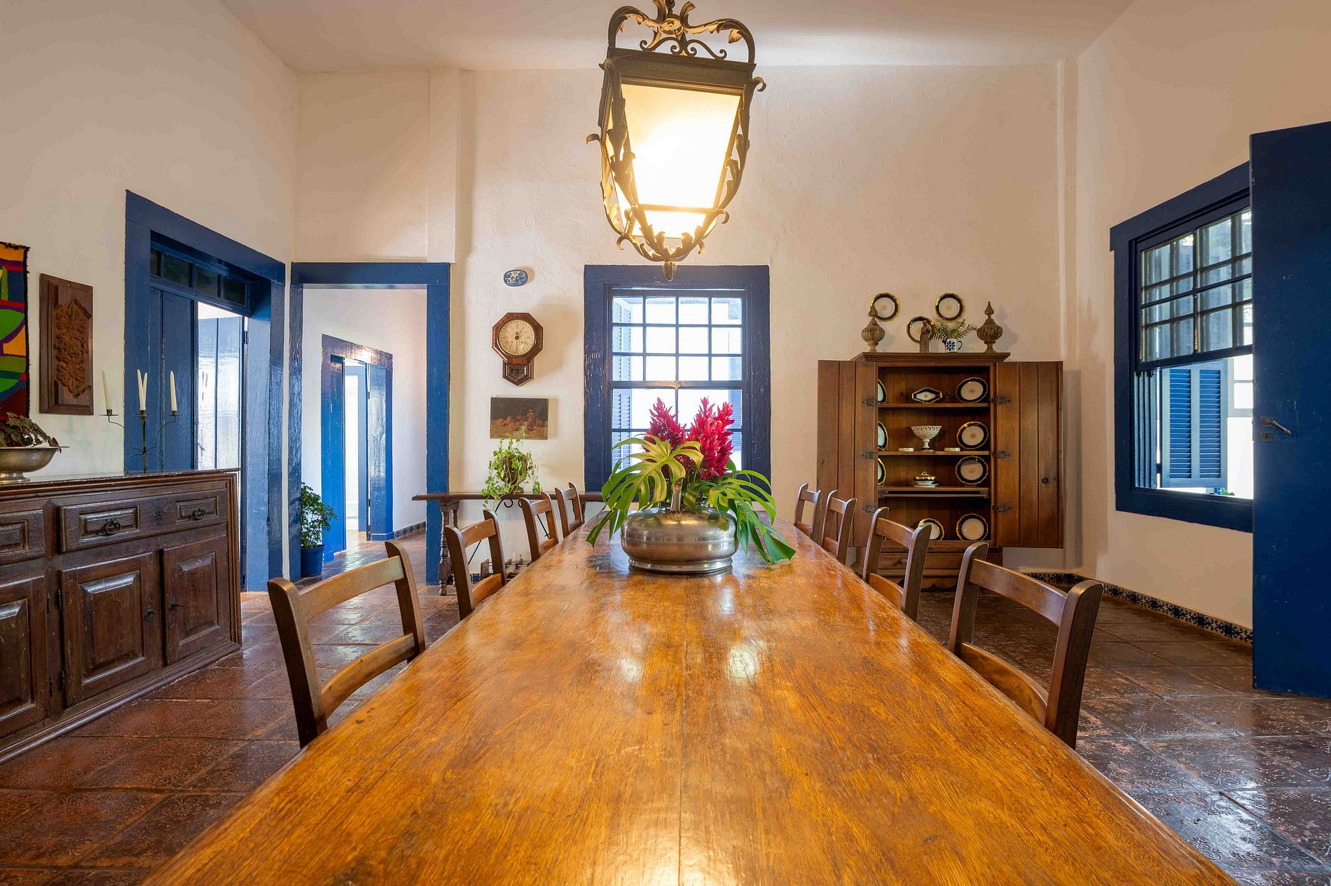 A sede, com mais de 150 anos de história, é uma construção colonial impecavelmente preservada, com 450m² de área total. Os ambientes foram pensados para proporcionar conforto e momentos de convivência inesquecíveis: ampla sala de jantar com duas mesas – uma para 12 lugares e outra redonda para 4 pessoas – sala de visitas com lareira e sofás, terraço fechado com mesa de snooker, saleta de TV e terraço na fachada principal, perfeito para contemplar a paisagem.