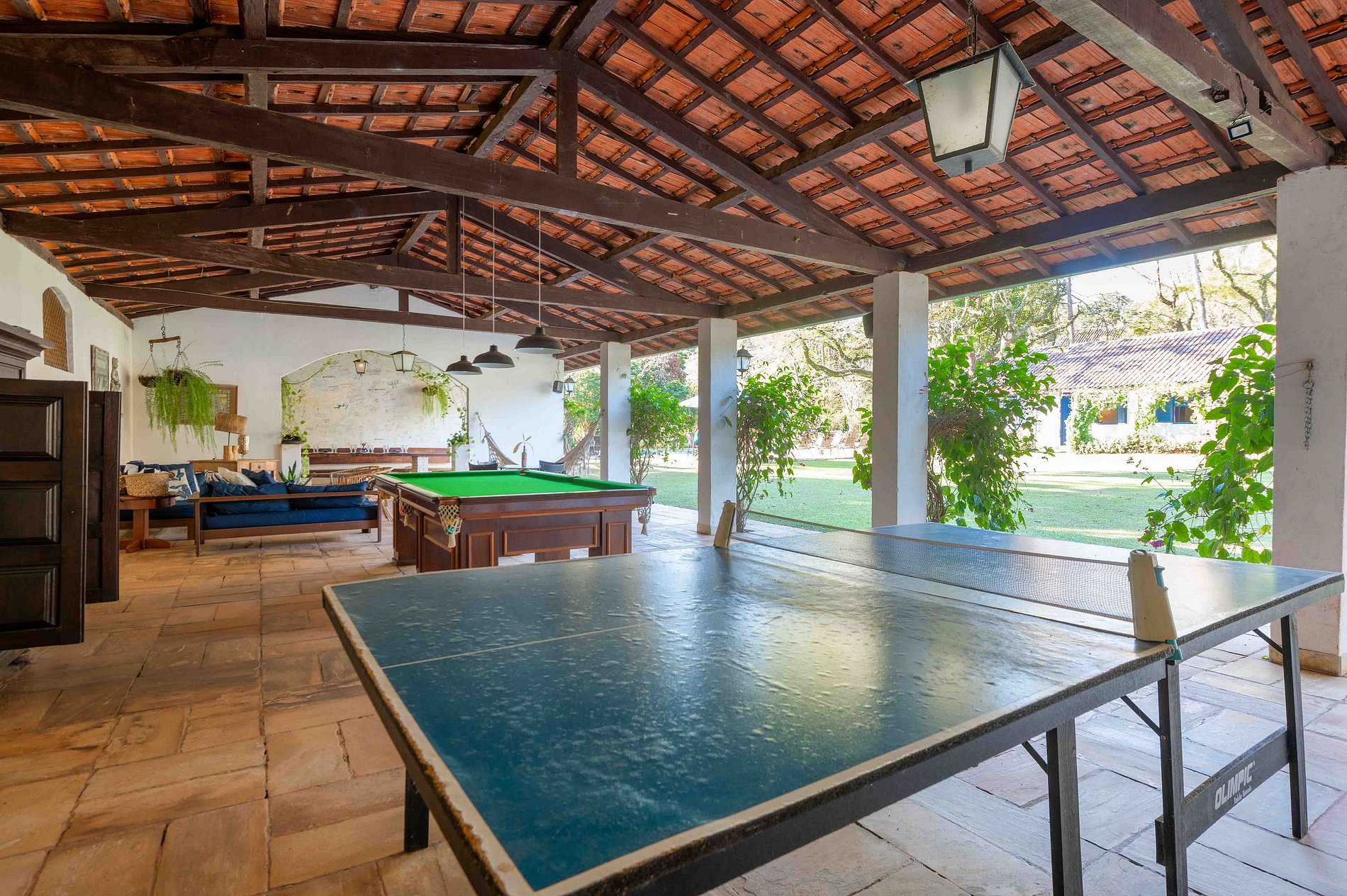 Além da sede, a propriedade oferece áreas de lazer recém-construídas, incluindo duas modernas quadras de areia para beach tênis e futevôlei, uma quadra de tênis, um pavilhão de 180m² com piscina, sauna, copa e churrasqueira, além de uma charmosa casa de hóspedes com dois quartos e um banheiro (64m²).