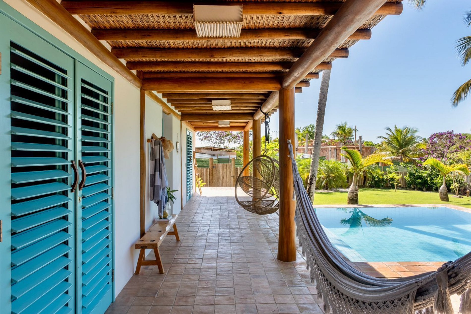 A área gourmet com churrasqueira é perfeita para receber família e amigos. O terraço e a varanda com redes oferecem espaços ideais para relaxar, enquanto o jardim privativo emoldura a piscina exclusiva da casa. Para os amantes do mar, há ainda caiaque disponível para uso (mediante consulta prévia para agendamento).