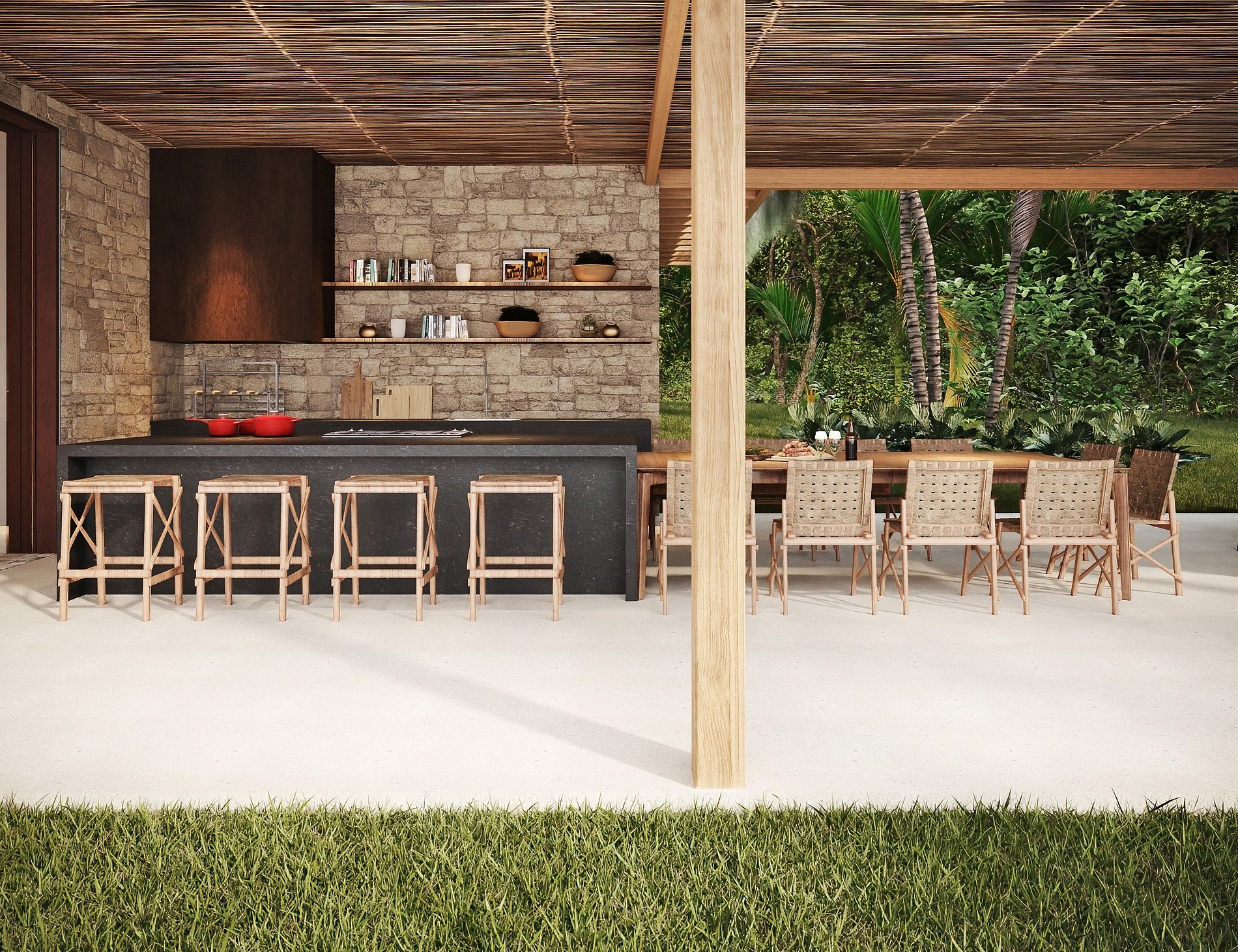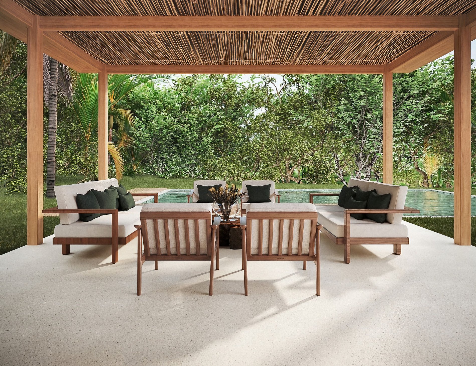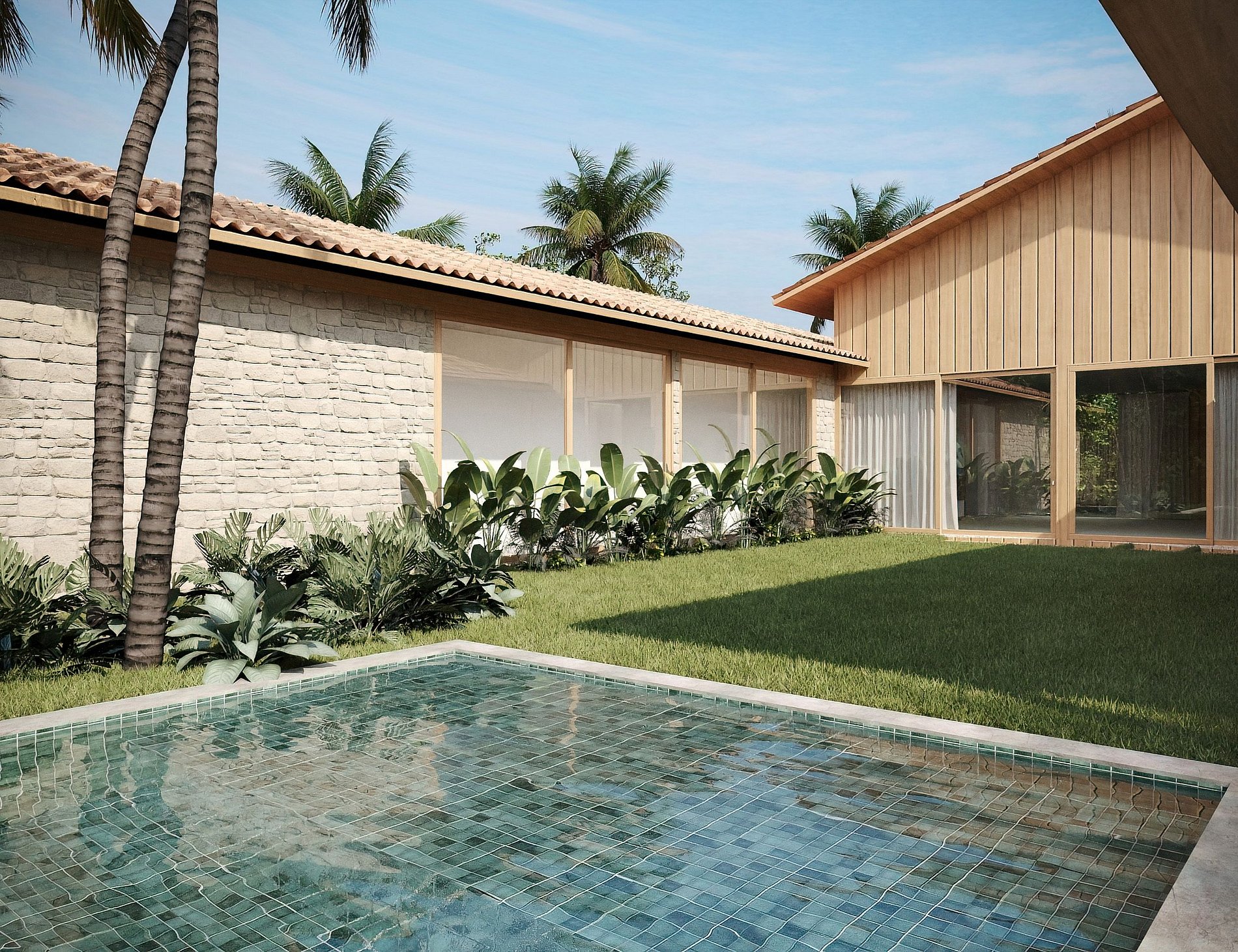 • Sede Social projetada por Marcos Tomanik com 17 villas, piscina, bar e restaurante exclusivos para condôminos