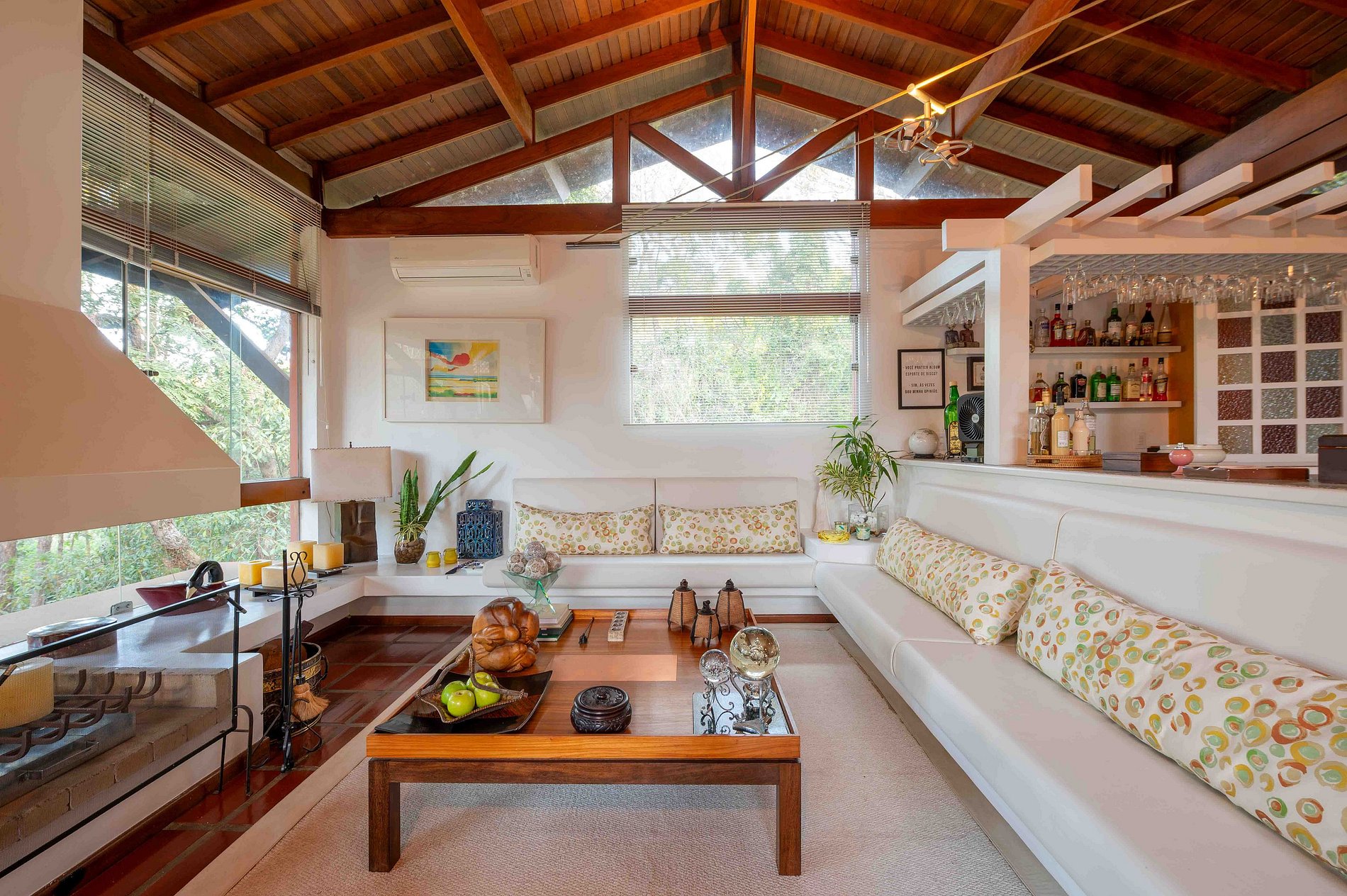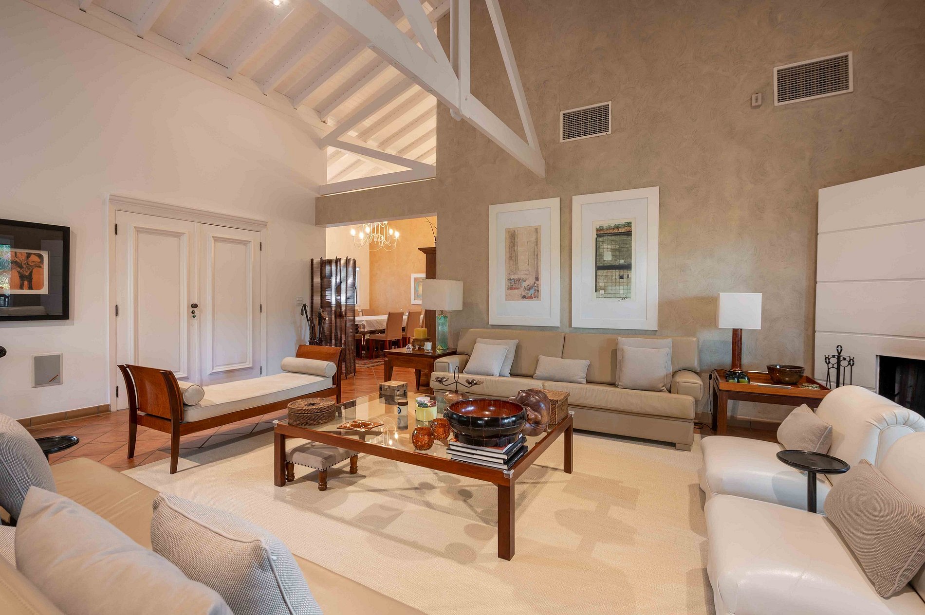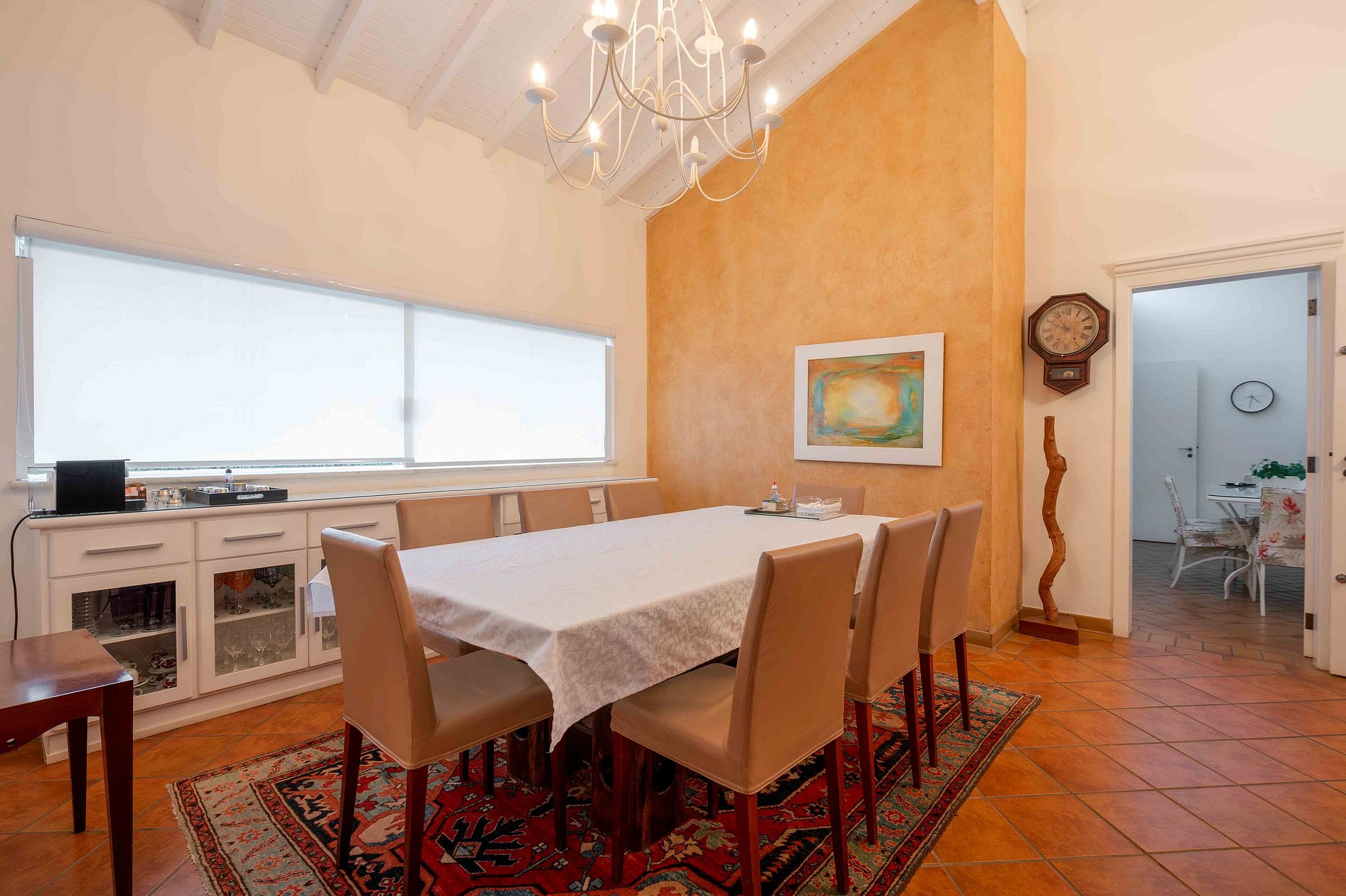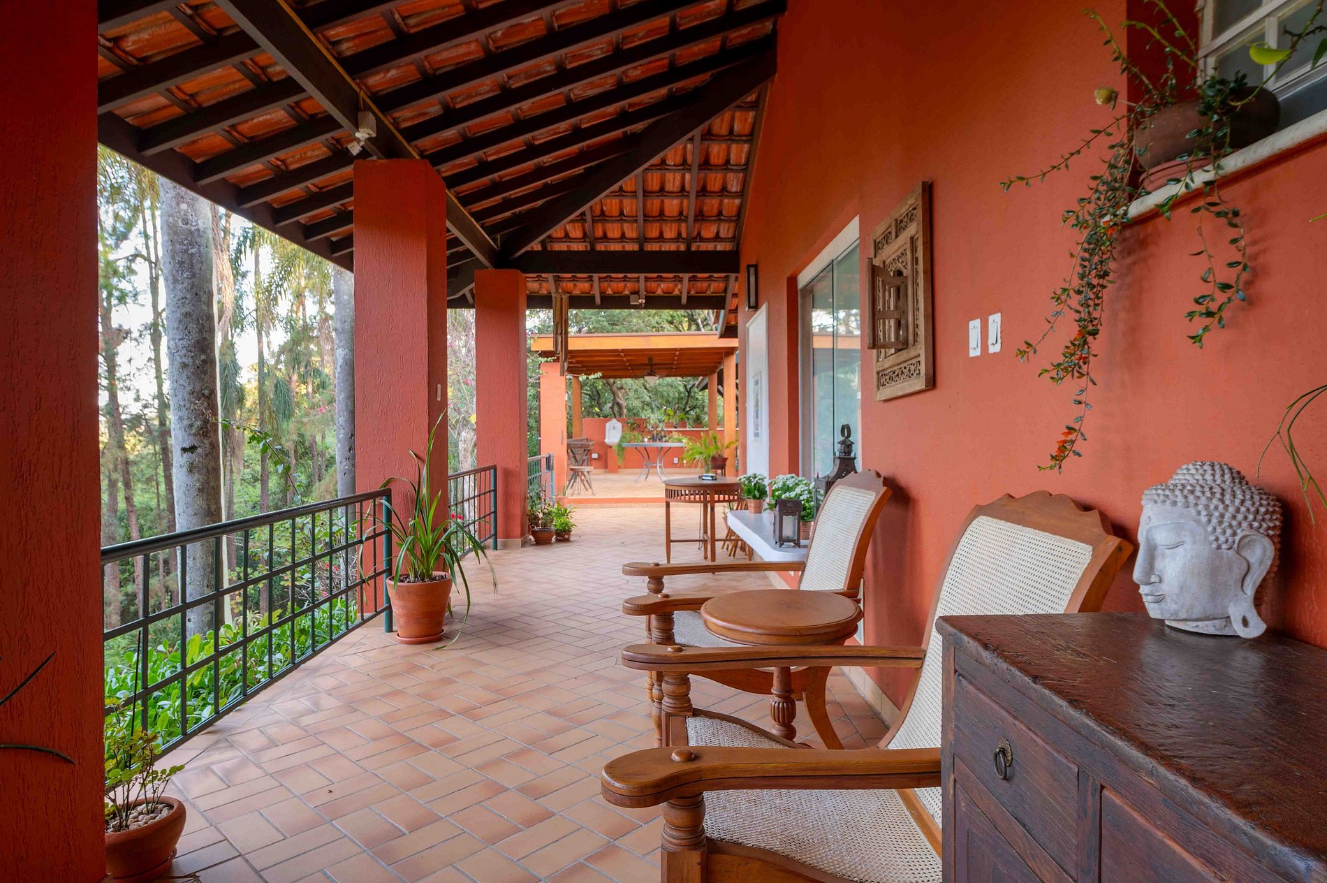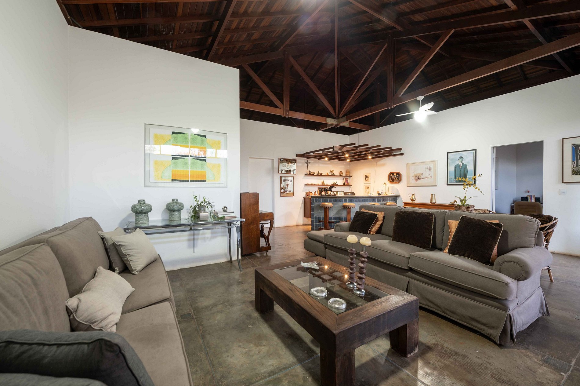 Com 909,02 m², a casa sede foi construída em posição estratégica, oferecendo vista espetacular para a piscina, churrasqueira, lagos e pomar.