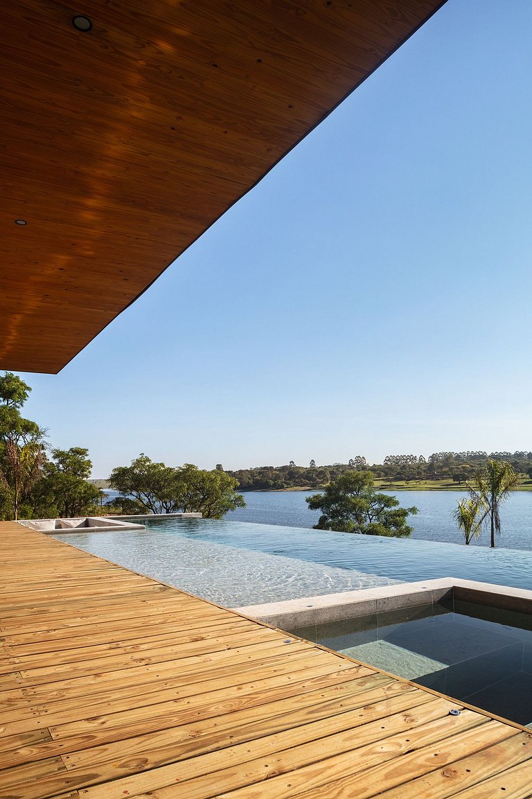 Na varanda fica o espaço gourmet com um forno de pizza em inox, uma churrasqueira parrilla e móveis assinados pela TIDELLI, voltado para a represa e a majestosa piscina. A área de lazer conta ainda com quadra de tênis, quadra de beach tênis, jardins, píer na represa para barco e dois jet skis, além de uma garagem de barco e quadriciclo.