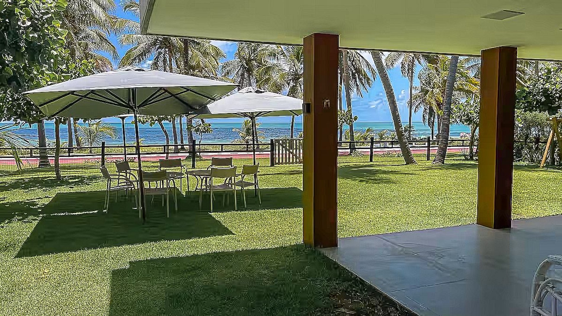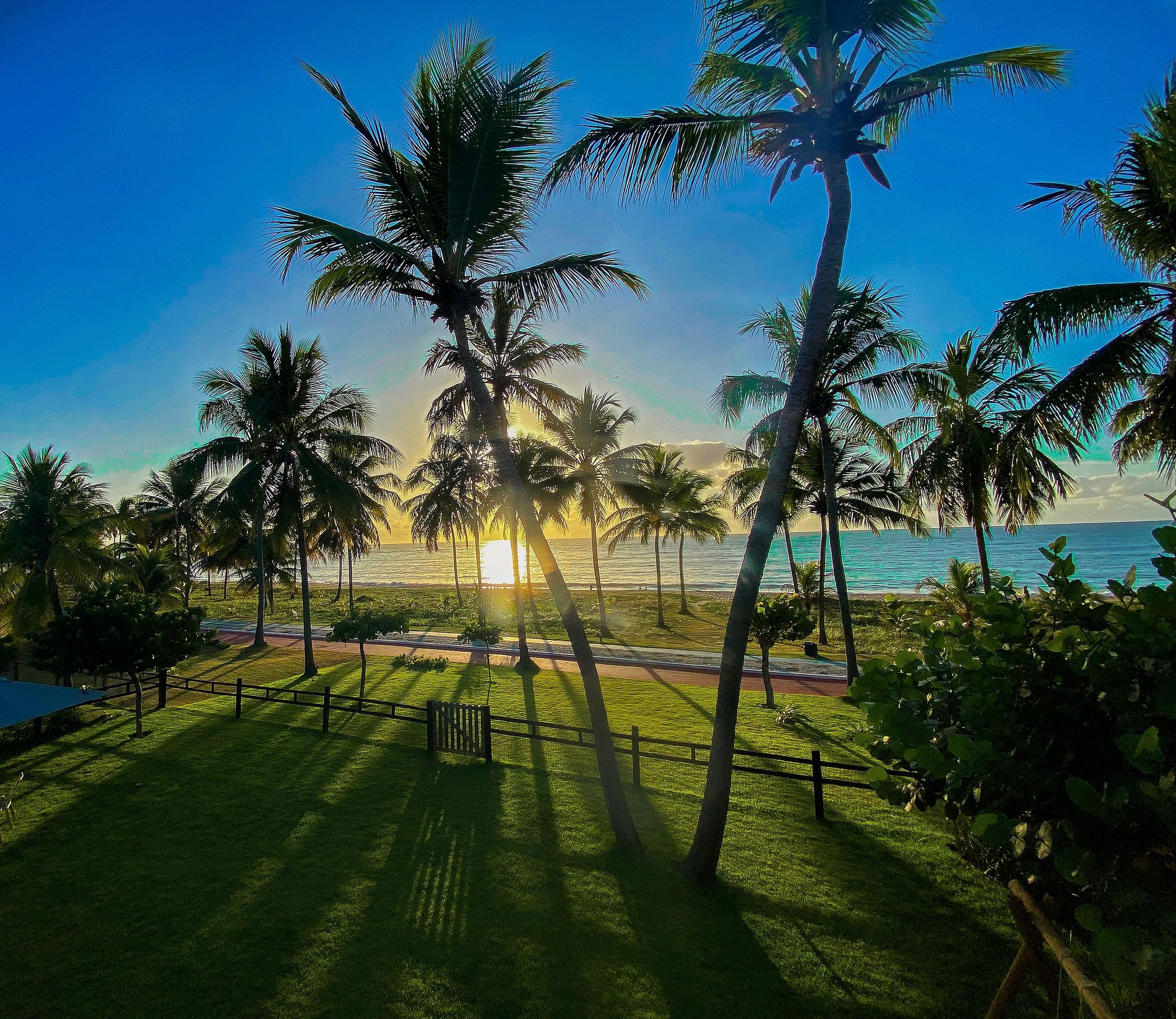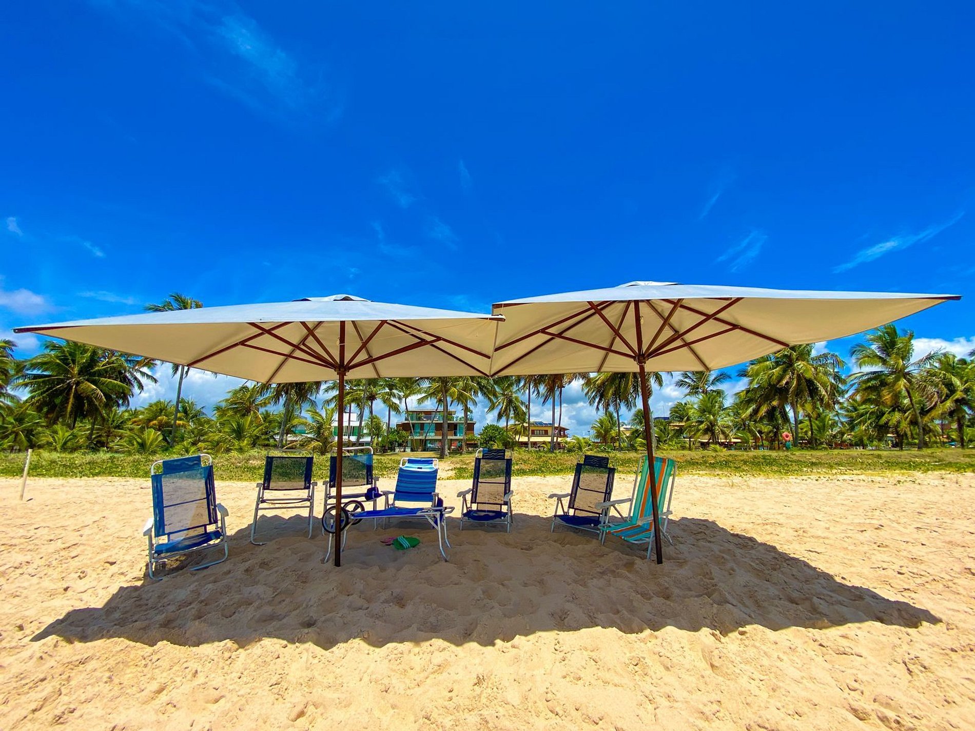 Durante o dia, a equipe da casa prepara a praia com sombreiros e cadeiras para os hóspedes, além de oferecer atendimento com petiscos e bebidas. Ao cair da noite, o jantar pode ser servido ao ar livre, com o mar como cenário e o clima de Guarajuba como companhia.