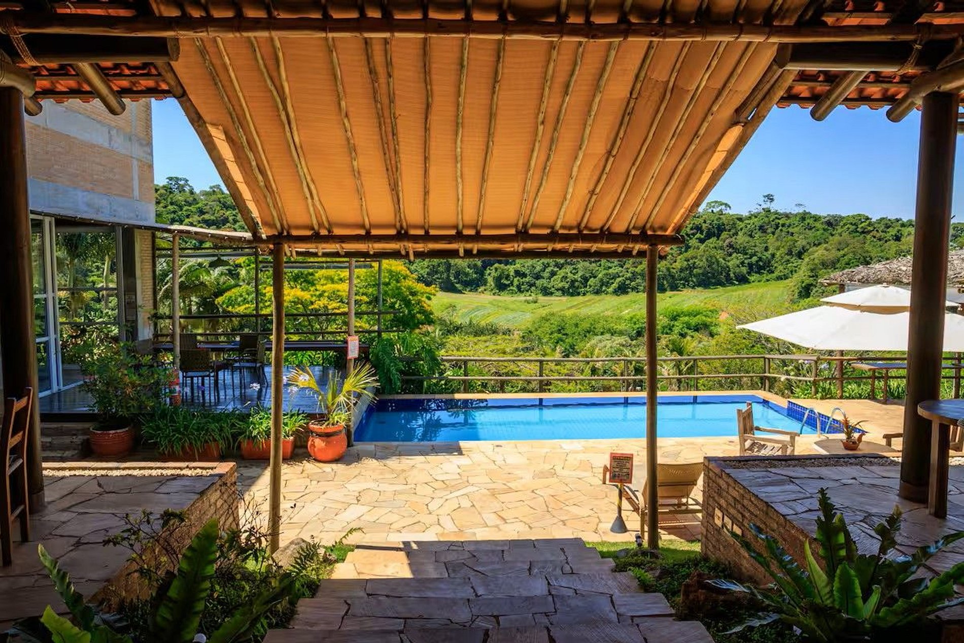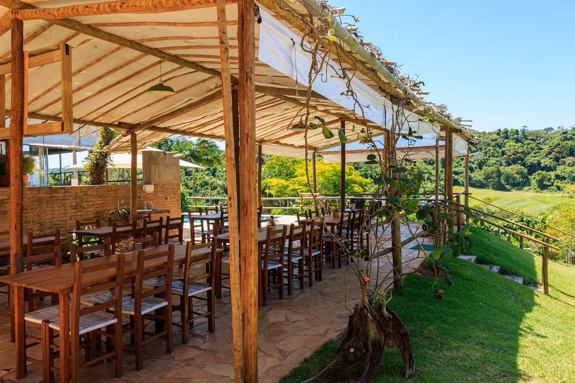 A propriedade mantém ainda uma horta orgânica, pomar variado, galinheiro e áreas onde a fauna local é presença constante — macaquinhos, tucanos, esquilos e outros pássaros encantam os visitantes.