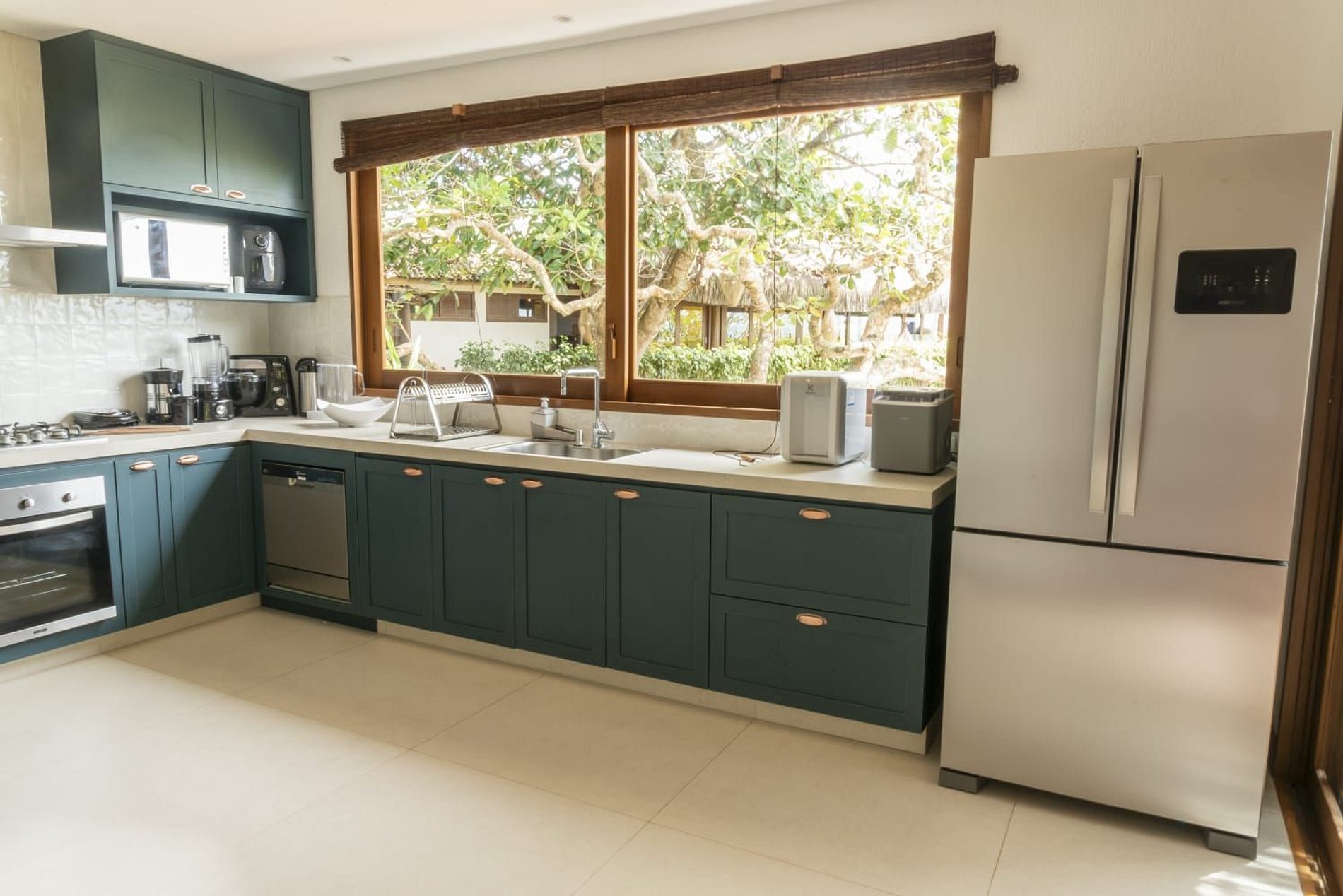 A cozinha é planejada e completa, com eletrodomésticos modernos e toda a estrutura necessária para o preparo de refeições em família ou entre amigos..