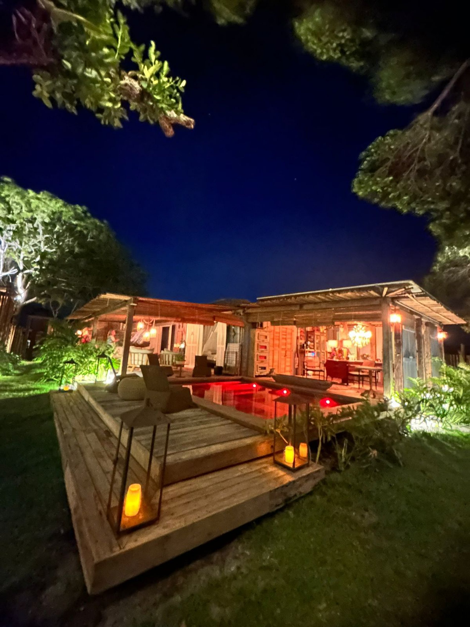 O charme dessa casa está em cada detalhe: iluminação intimista, piscina com um design diferenciado e um deck de madeira que convida a momentos de relaxamento. O jardim é amplo, integrado à natureza local, trazendo ainda mais privacidade e aconchego.