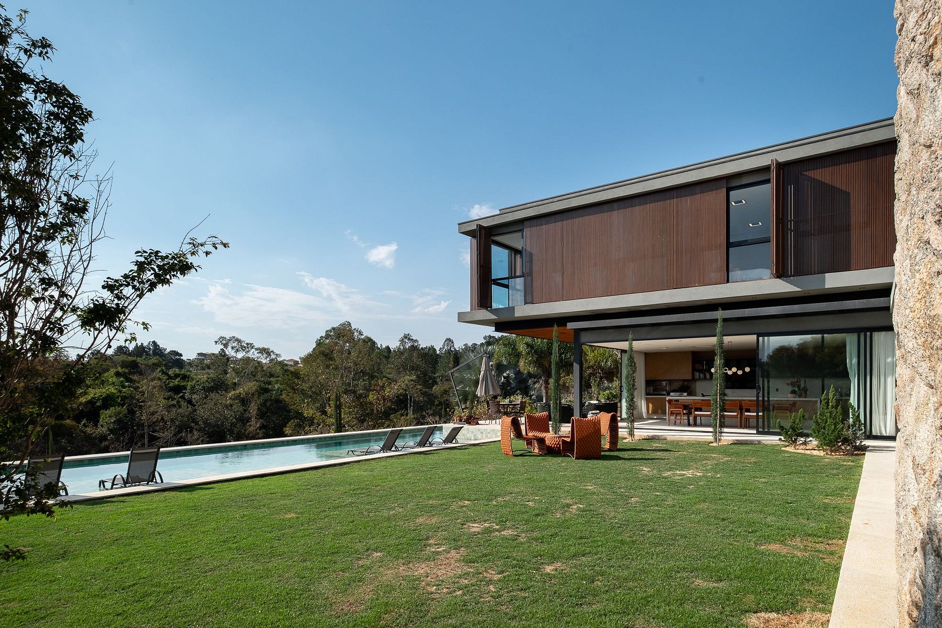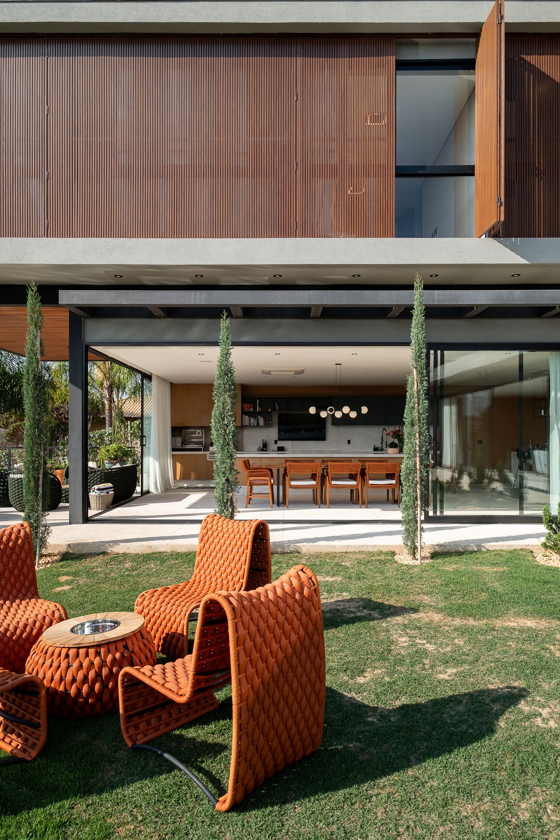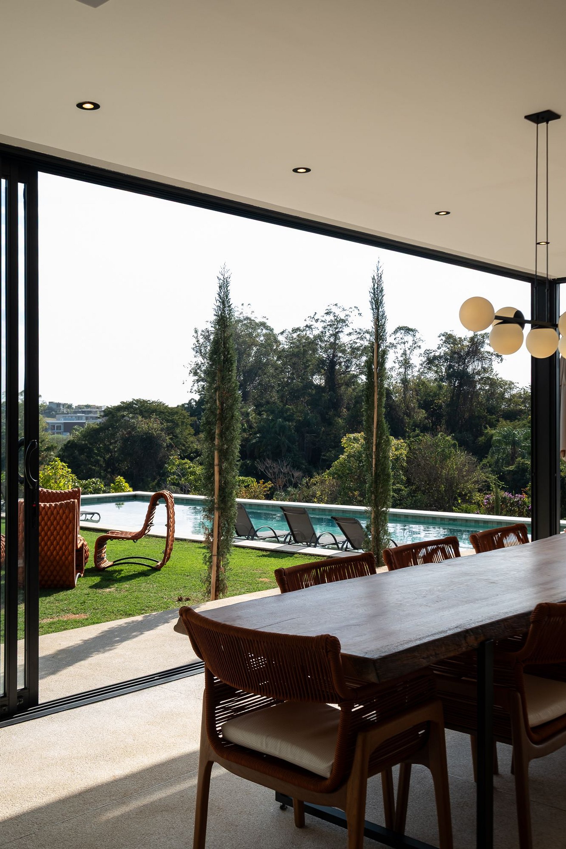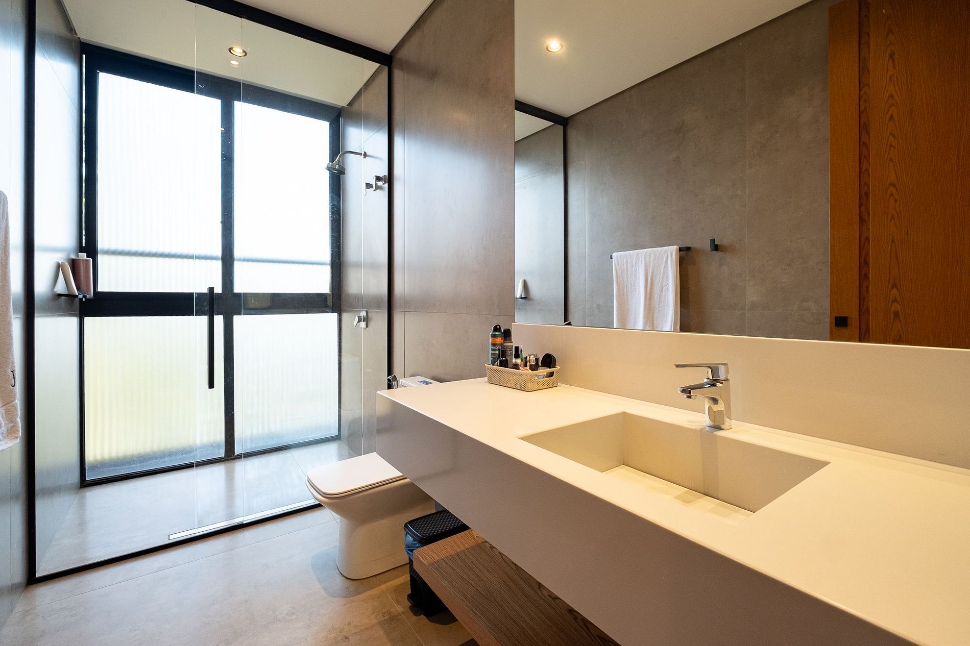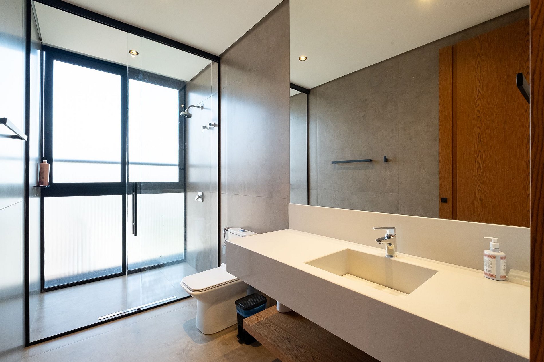 A sala ampla foi projetada para receber com estilo. Com pé-direito generoso e integração aos demais ambientes, oferece conforto e luminosidade natural, sendo o coração da casa para momentos de convívio.