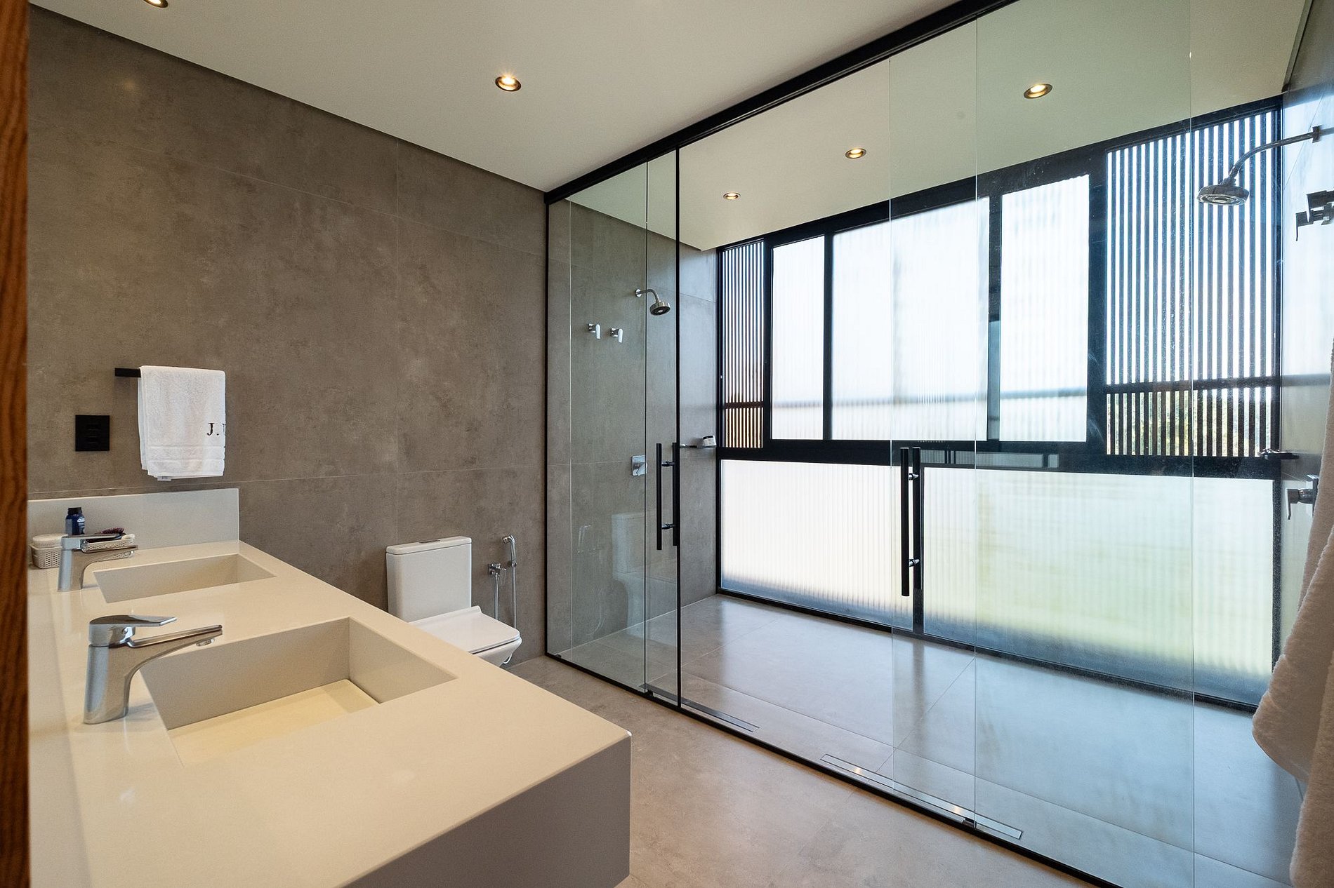A sala ampla foi projetada para receber com estilo. Com pé-direito generoso e integração aos demais ambientes, oferece conforto e luminosidade natural, sendo o coração da casa para momentos de convívio.