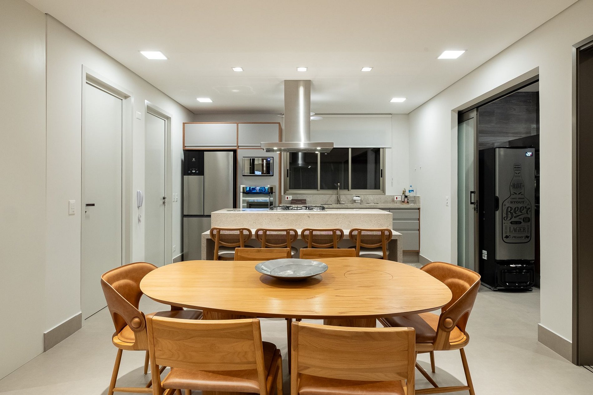A cozinha é totalmente equipada, com design planejado e acabamentos de alto padrão