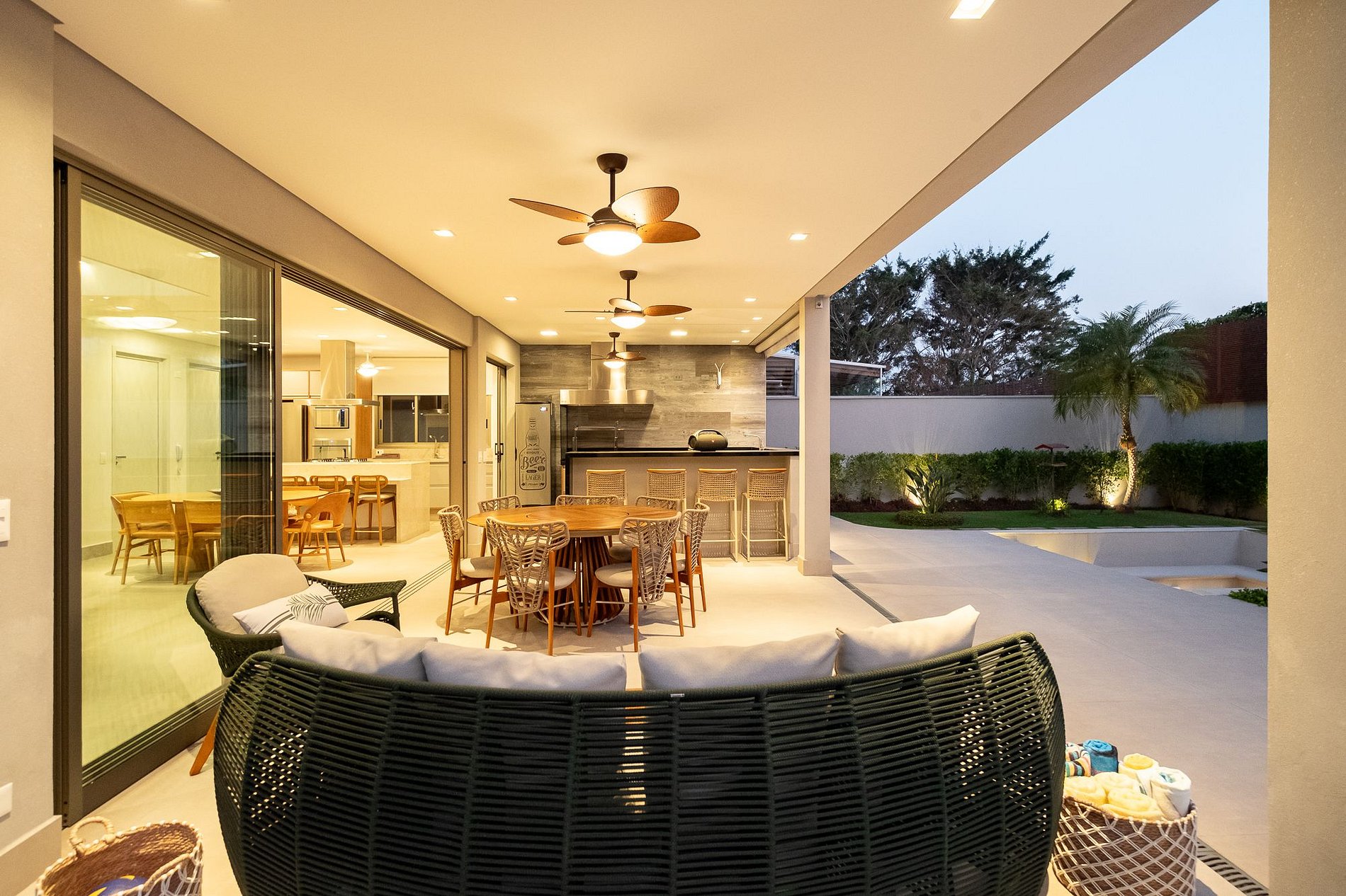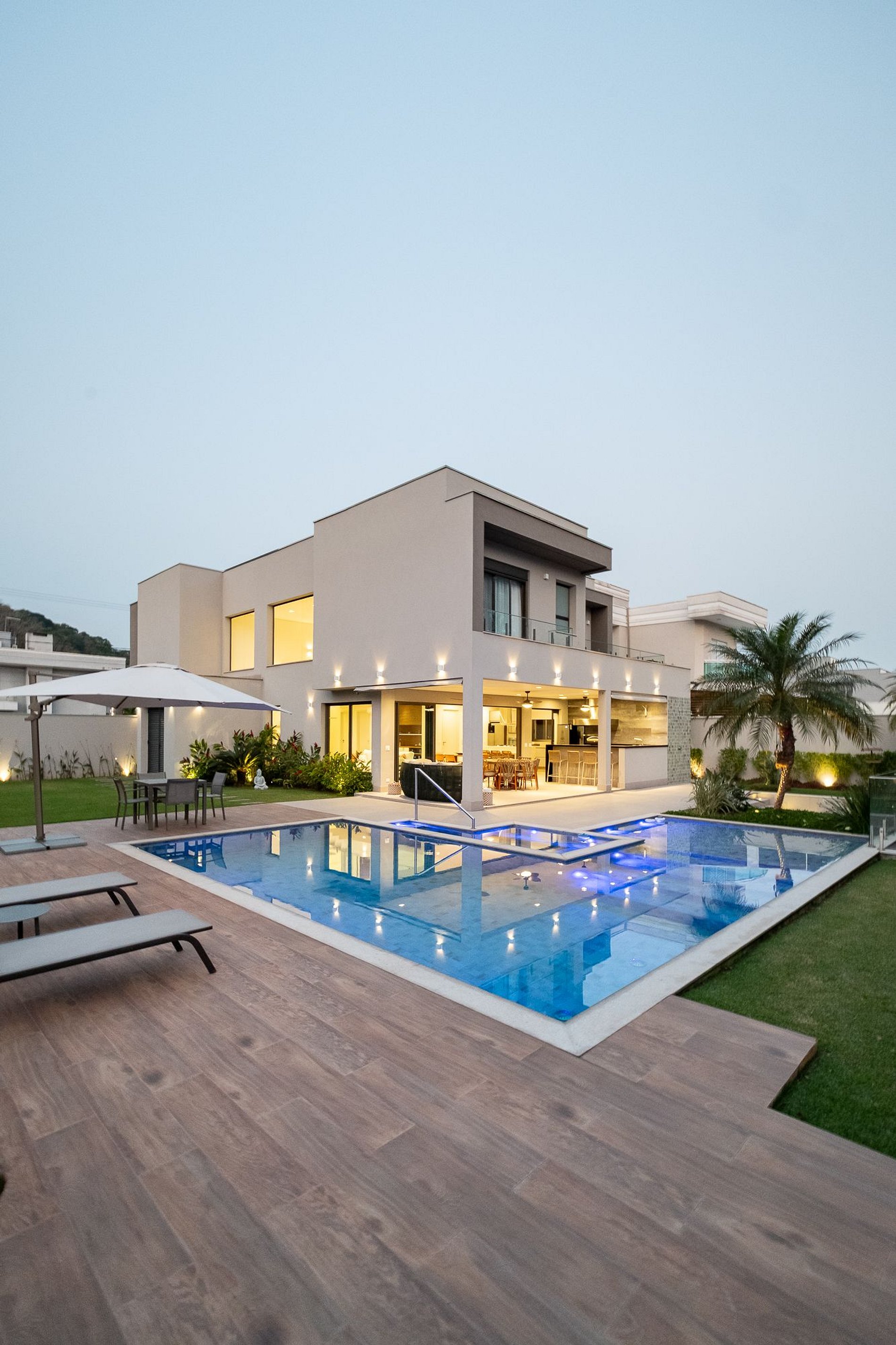 O espaço externo é um verdadeiro convite para o lazer. Conta com uma ampla piscina iluminada, deck de madeira, jardim bem cuidado e área gourmet integrada conta com churrasqueira e estrutura completa, ideal para receber., perfeita para confraternizações e momentos de descanso em família ou com amigos.
