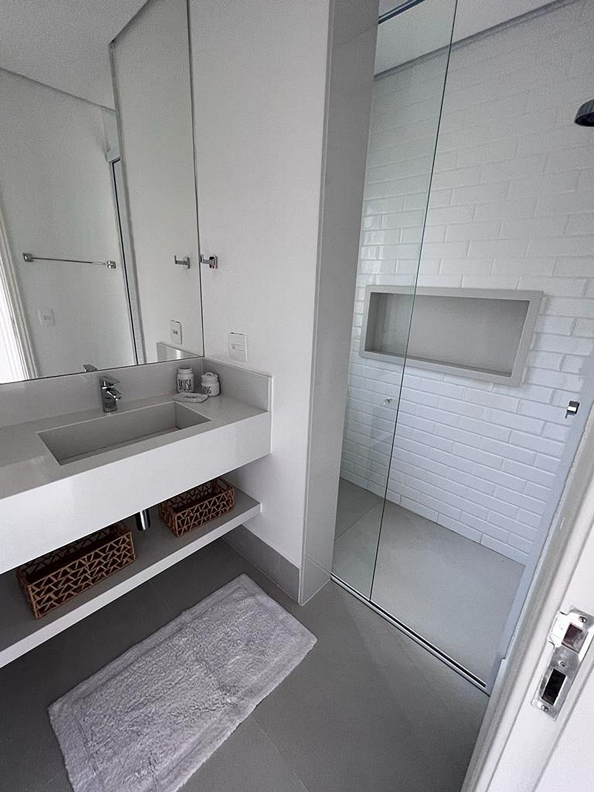 A cozinha moderna e bem equipada conta com armários planejados, bancadas espaçosas, eletrodomésticos de qualidade e ainda um espaço prático para refeições rápidas. Tudo pensado para unir funcionalidade e beleza no dia a dia.