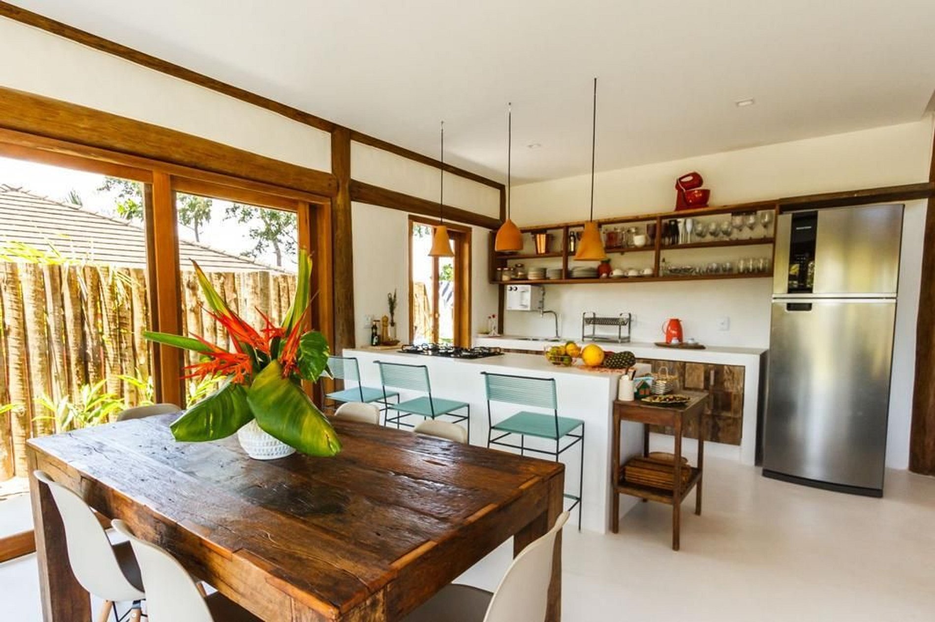 A cozinha está equipada com eletrodomésticos modernos e todos os utensílios necessários para preparar refeições. Há espaço integrado à sala de jantar, perfeito para momentos em família ou com amigos.