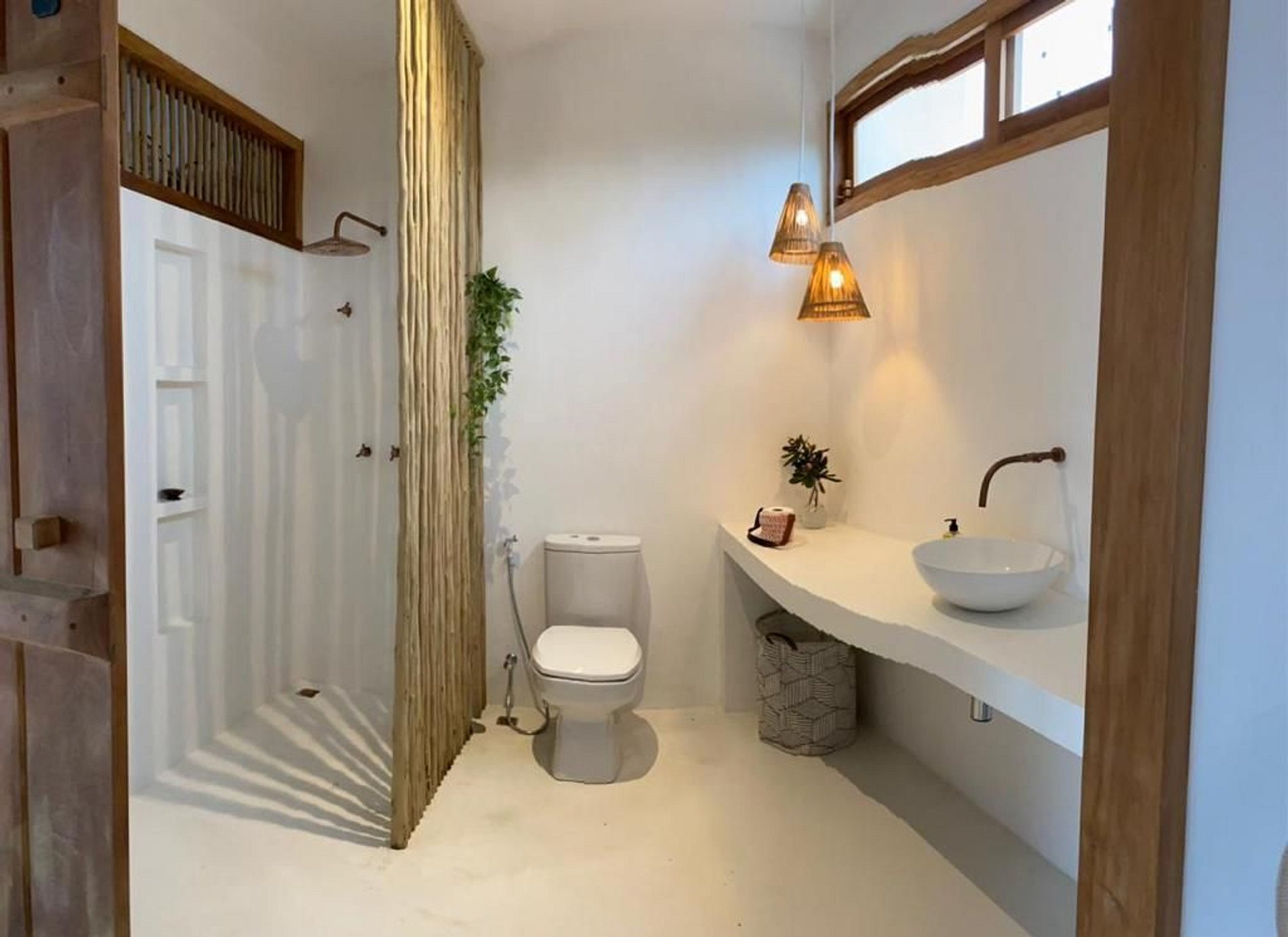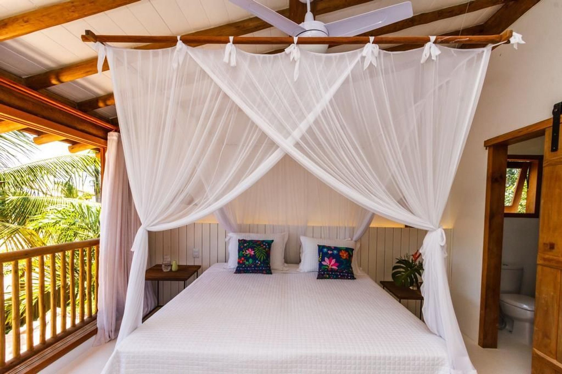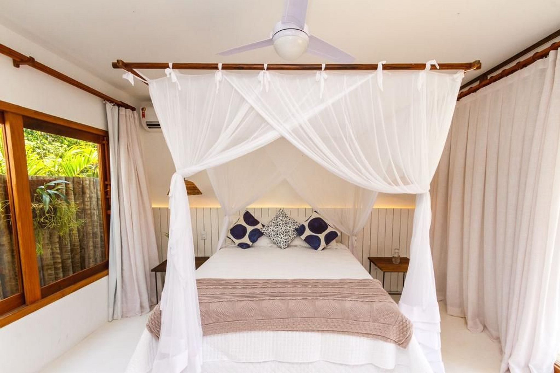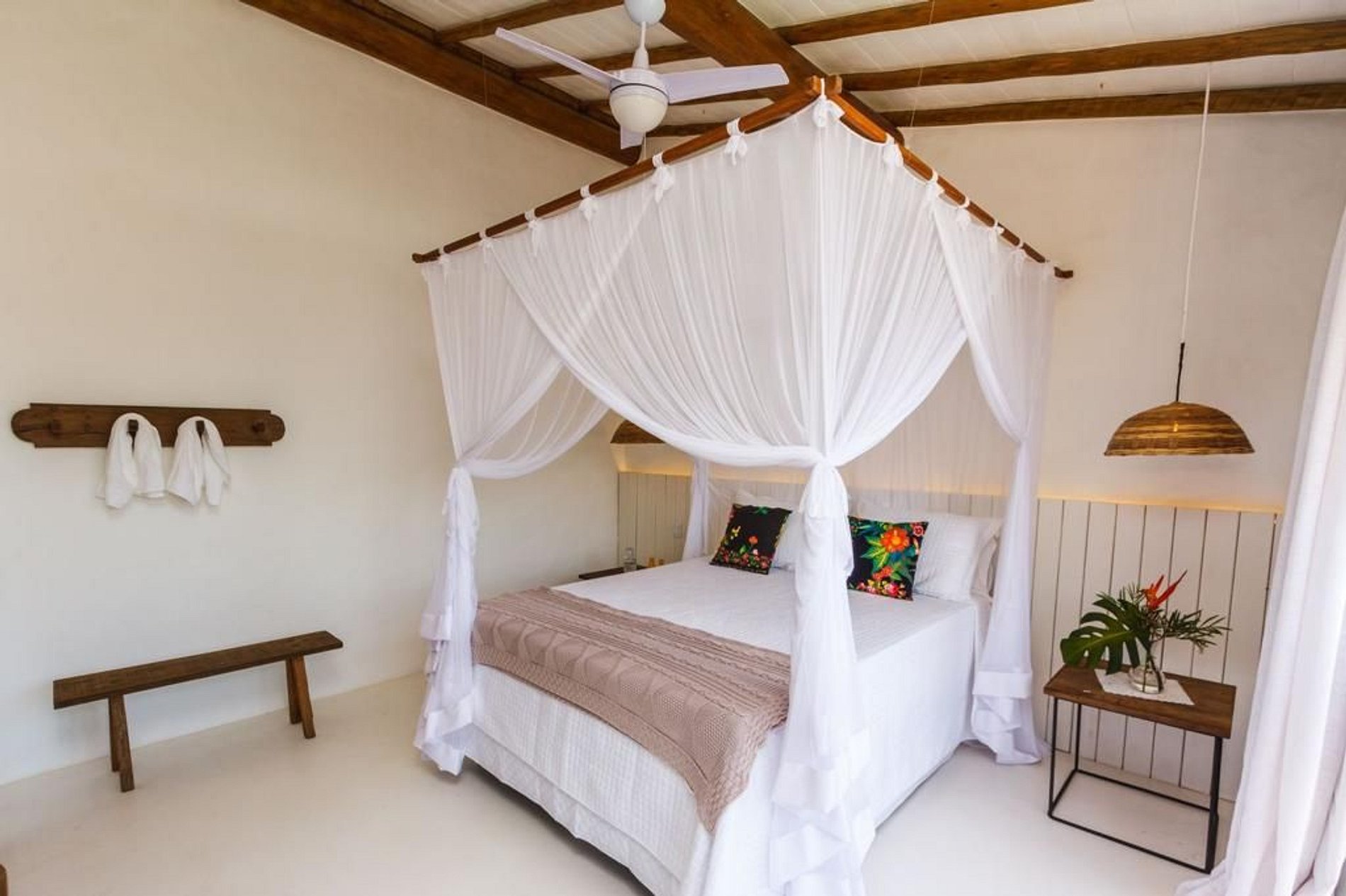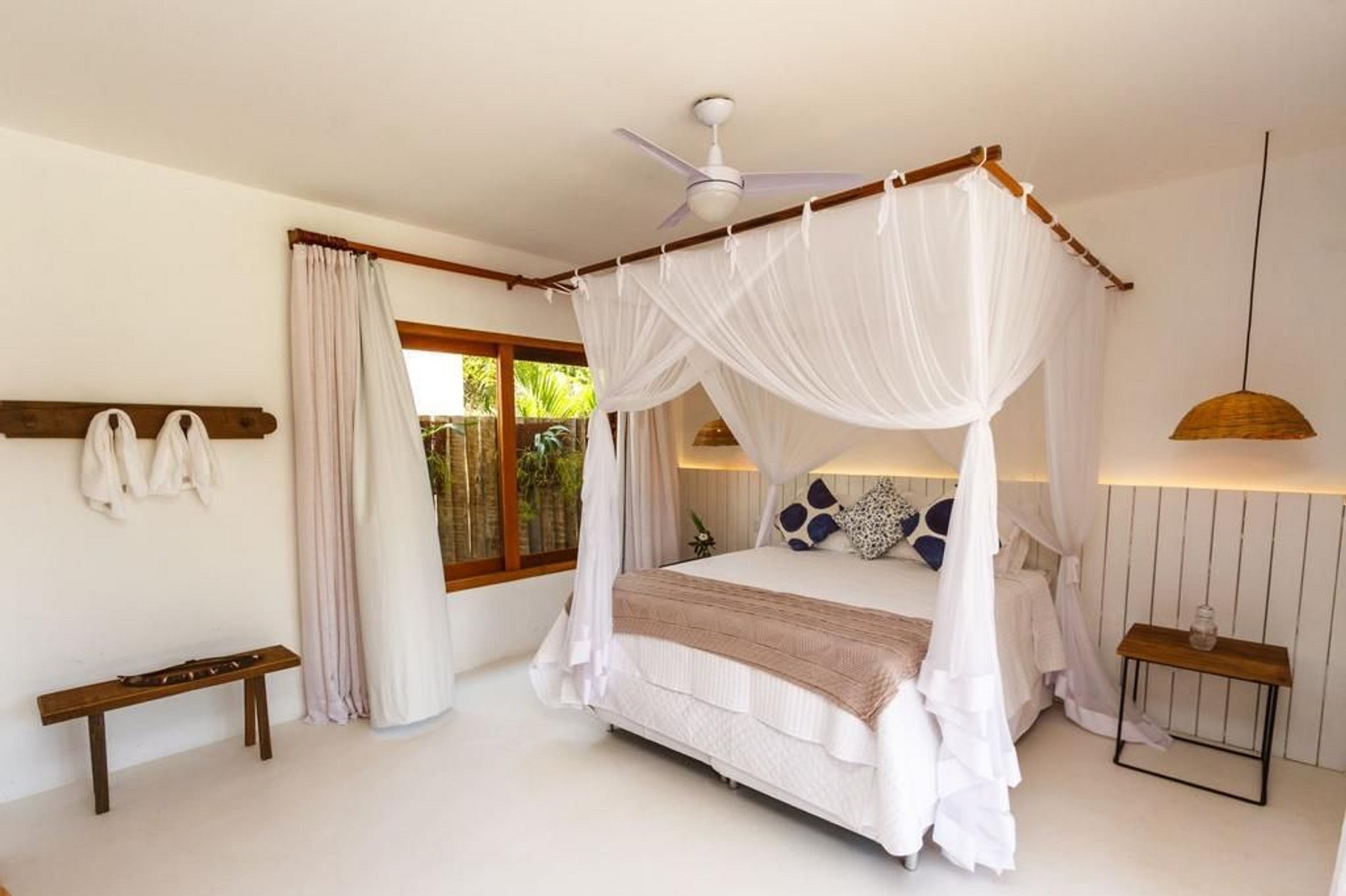 A casa acomoda confortavelmente até 6 hóspedes em 3 suítes climatizadas com ar-condicionado split: