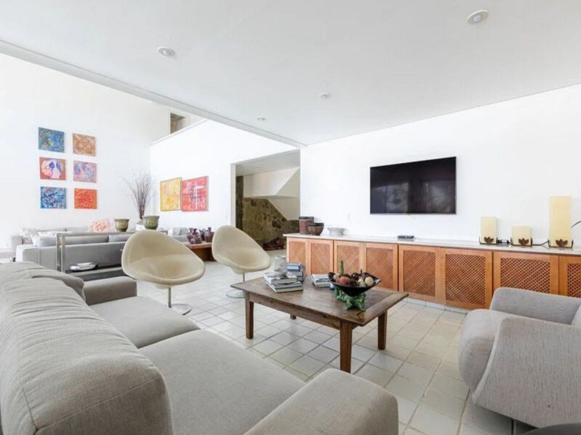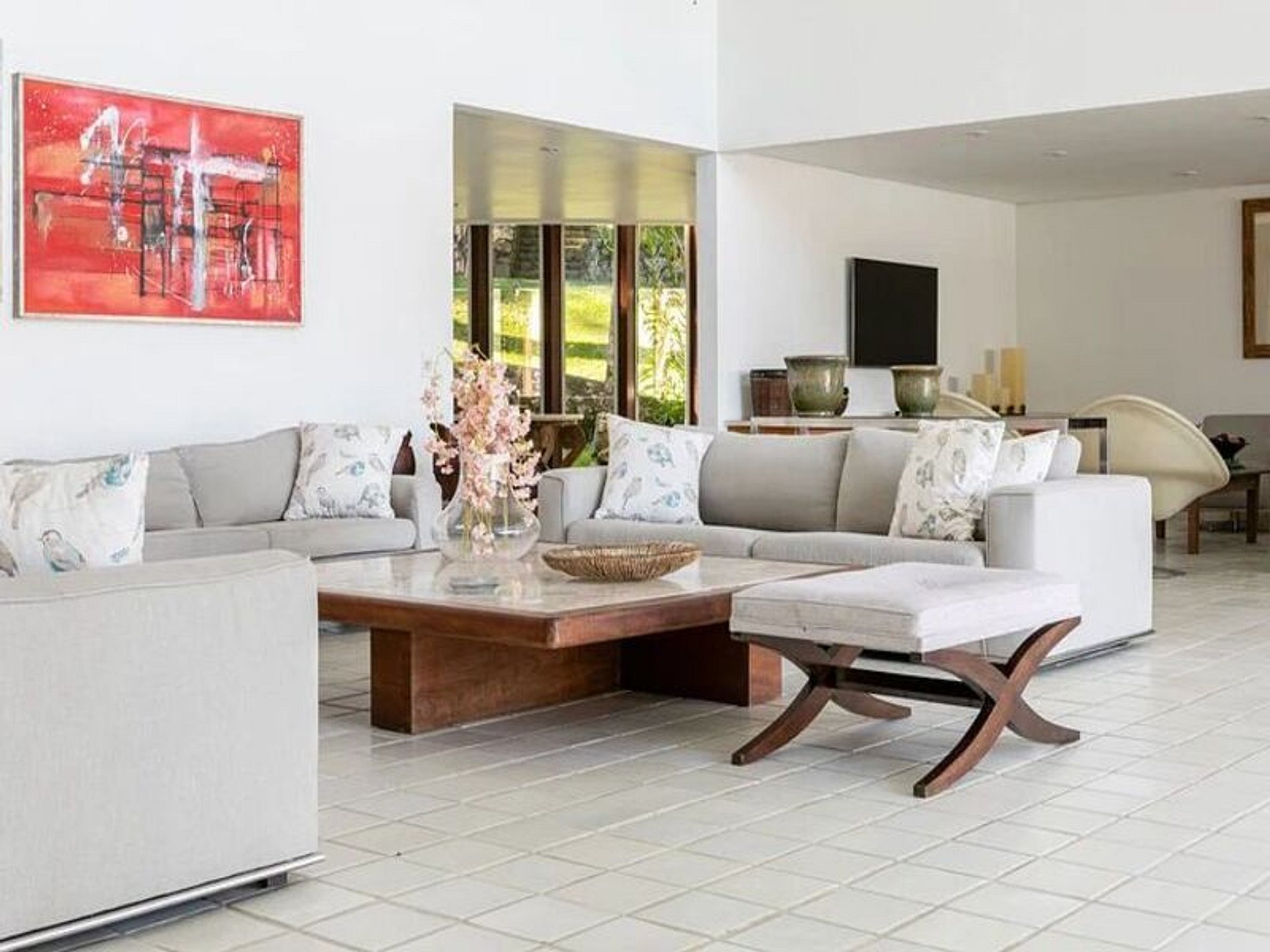 A propriedade ocupa um terreno de 7.000m², com 1.300m² de área construída, cercada por palmeiras imperiais e com vista panorâmica para o mar em todos os ambientes. O lazer é completo: a casa conta com piscina de frente para o mar com amplo deck para relaxar ao sol, praia privativa de águas cristalinas, quadra de tênis, sauna e uma área de churrasqueira ideal para reunir família e amigos. Para momentos de diversão, há ainda uma sala de jogos espaçosa equipada com mesa de sinuca.