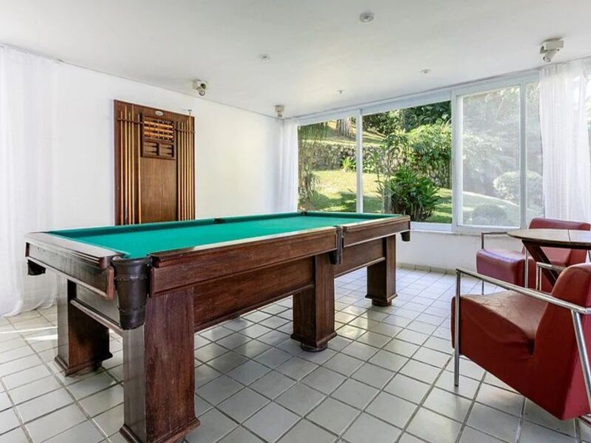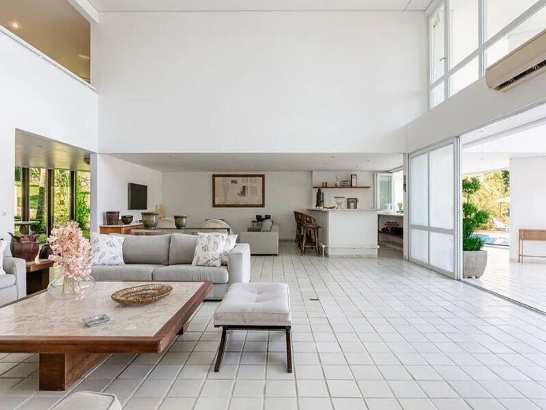 A propriedade ocupa um terreno de 7.000m², com 1.300m² de área construída, cercada por palmeiras imperiais e com vista panorâmica para o mar em todos os ambientes. O lazer é completo: a casa conta com piscina de frente para o mar com amplo deck para relaxar ao sol, praia privativa de águas cristalinas, quadra de tênis, sauna e uma área de churrasqueira ideal para reunir família e amigos. Para momentos de diversão, há ainda uma sala de jogos espaçosa equipada com mesa de sinuca.