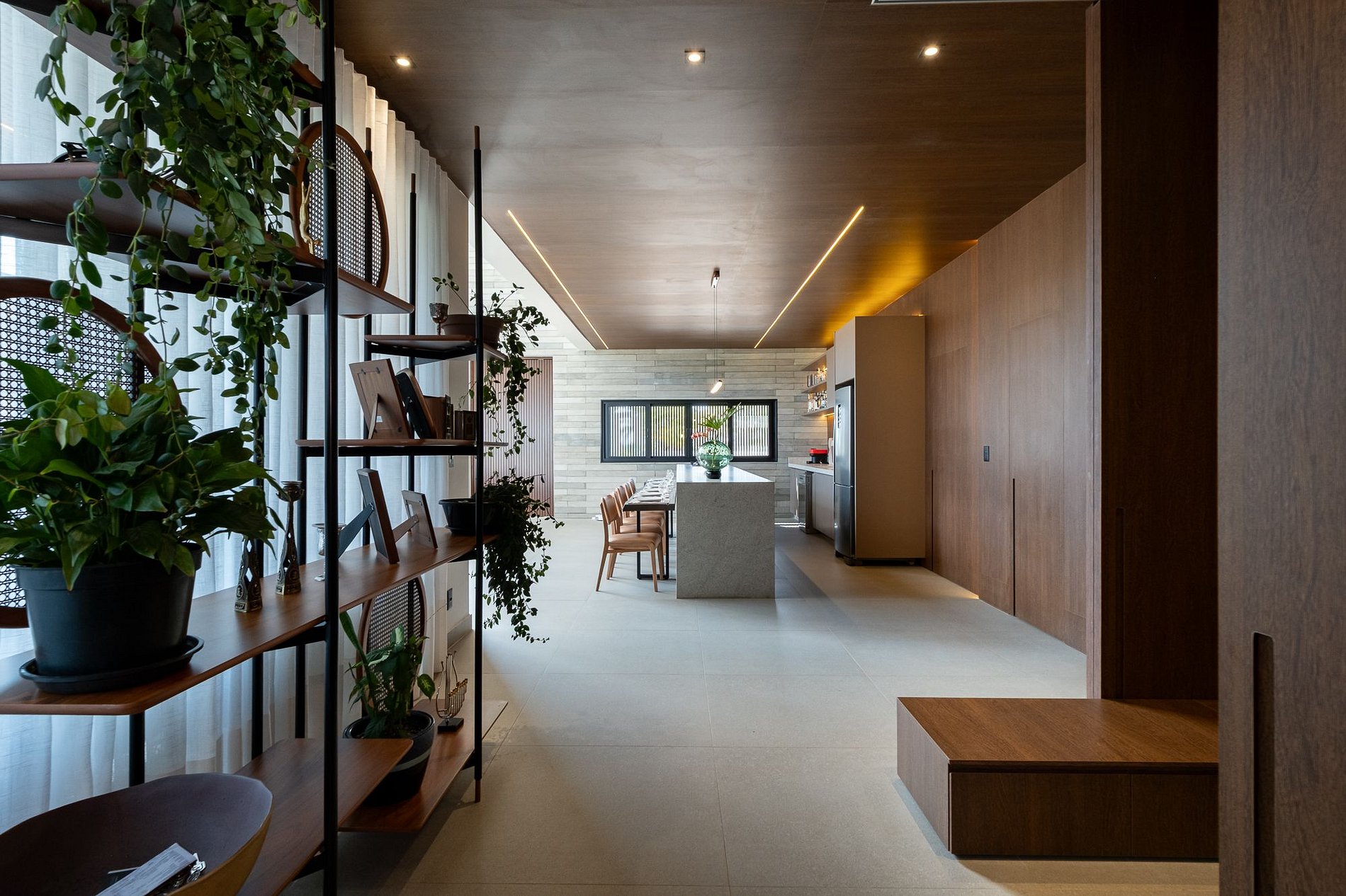 A casa acomoda até 18 pessoas em ambientes amplos, climatizados e elegantemente decorados. Conta com sala de estar aconchegante, sala de jantar, cinema privativo, lareira, piano, mesa de bilhar, mesa de ping-pong e jogos de tabuleiro. Para maior comodidade, dispõe também de lavanderia completa com máquina de lavar, secadora, ferro de passar e varal.