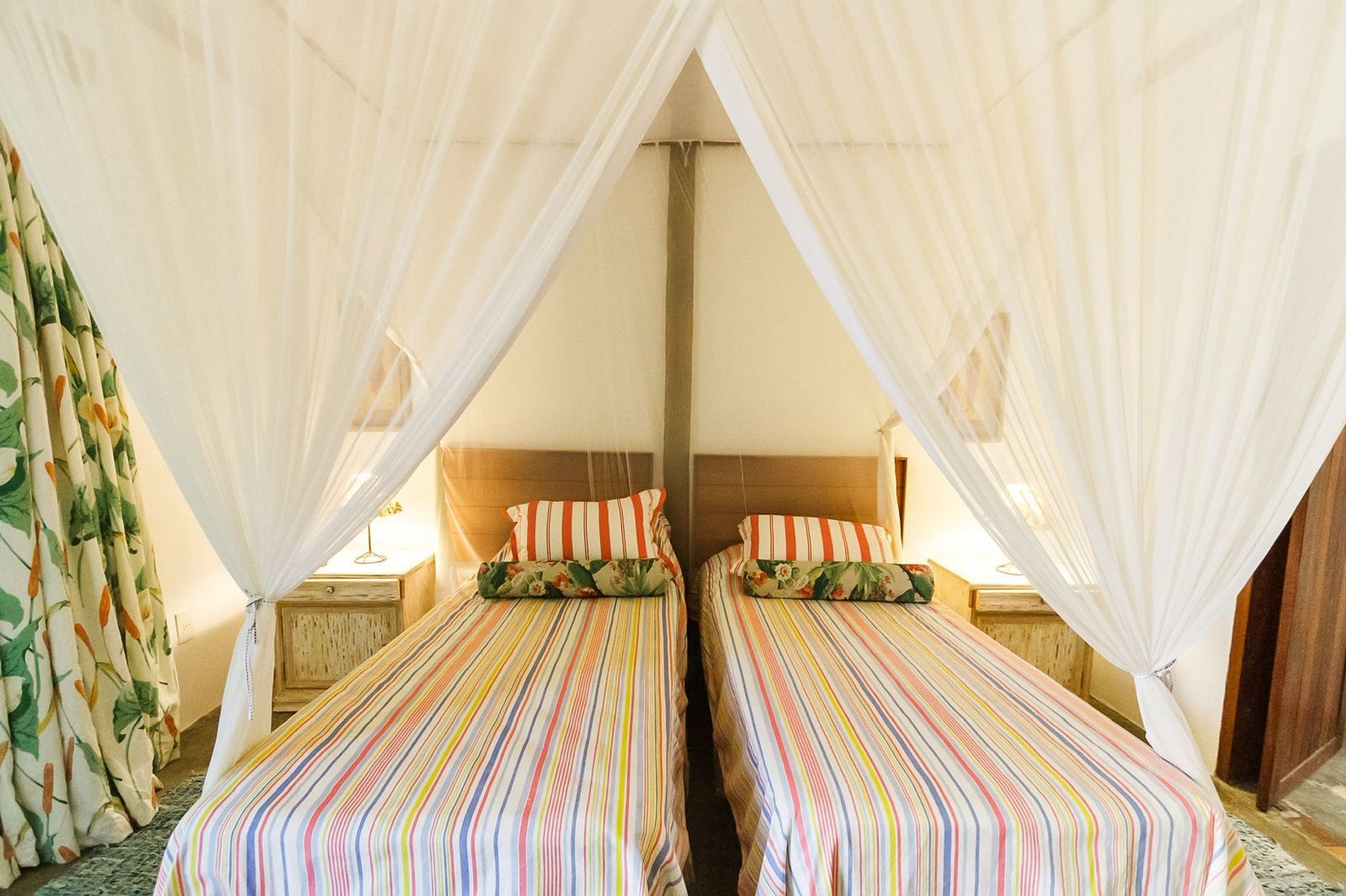 A casa acomoda confortavelmente até 10 hóspedes em 5 suítes, todas com cama de casal, ar-condicionado e varandas privativas.