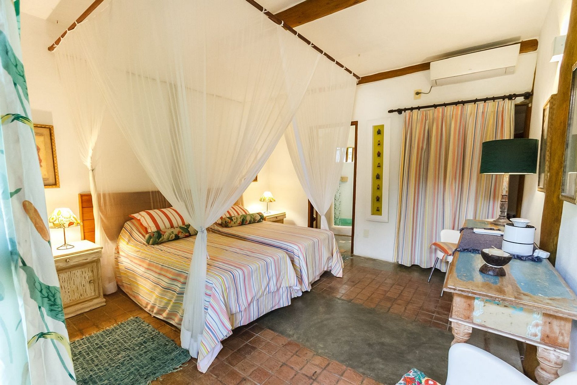 A casa acomoda confortavelmente até 10 hóspedes em 5 suítes, todas com cama de casal, ar-condicionado e varandas privativas.