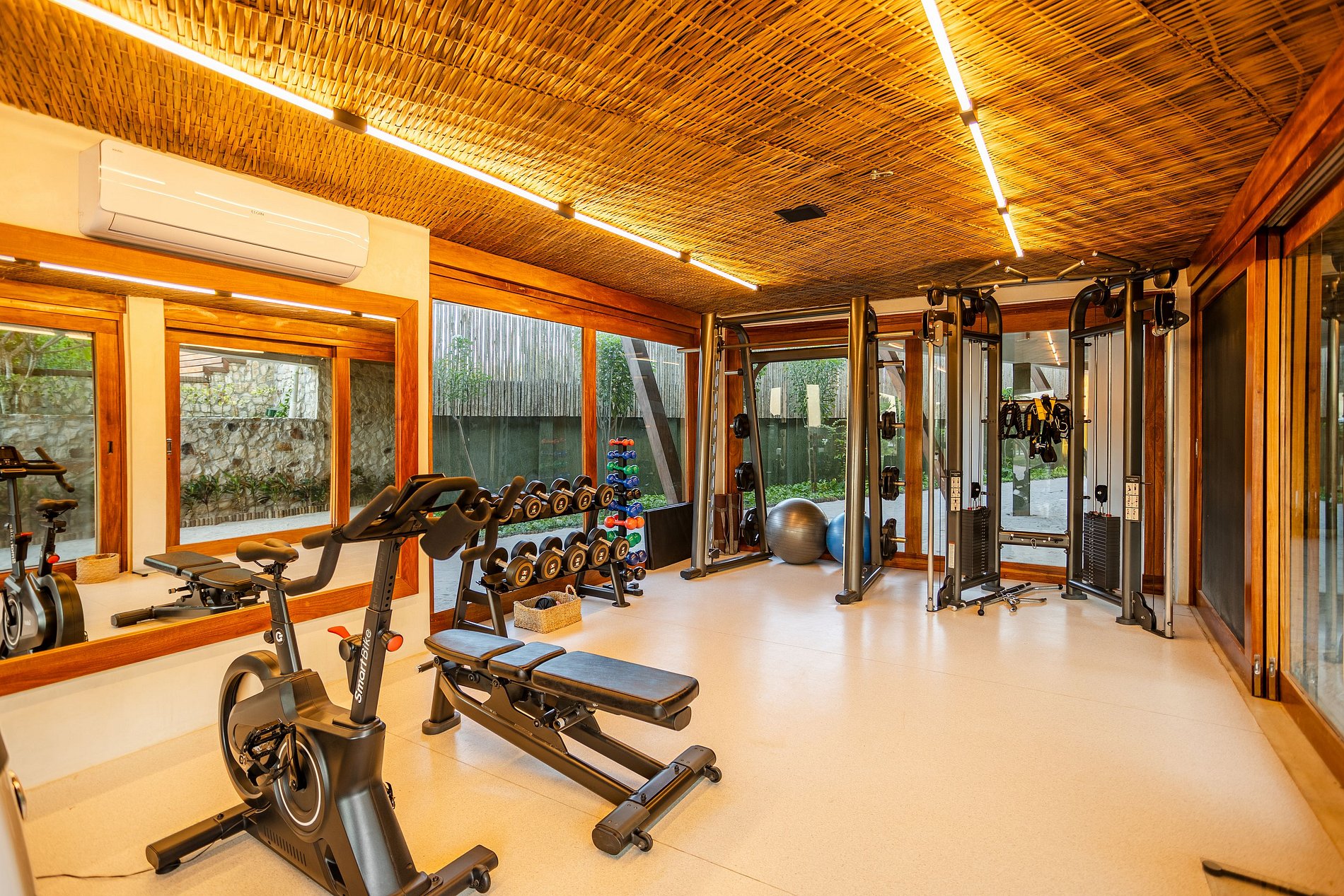 A cozinha completa é moderna e funcional, equipada com todos os utensílios e eletrodomésticos necessários. Conectada à área externa, convida a experiências gastronômicas leves e descontraídas, com o charme de uma casa de praia contemporânea.