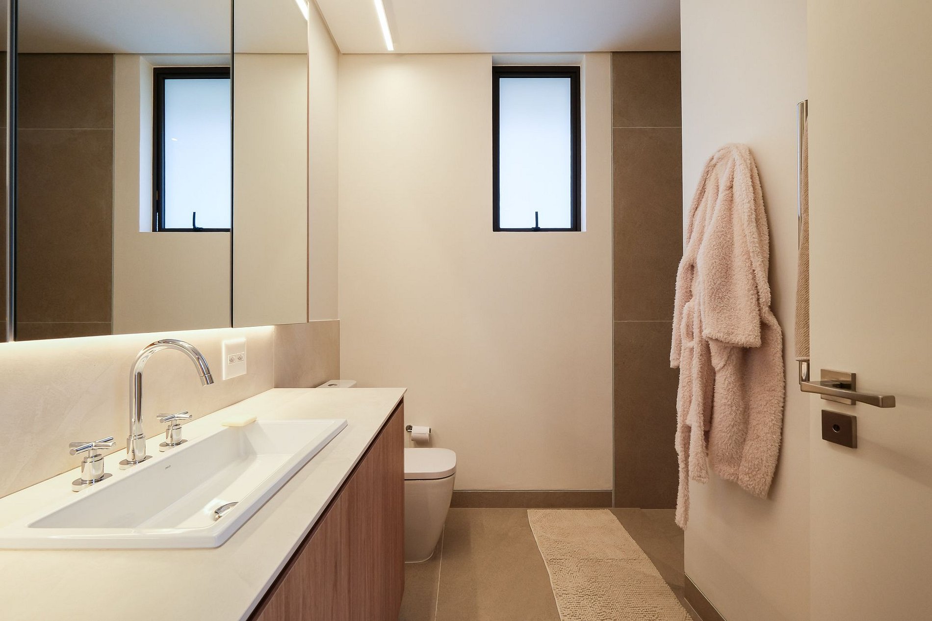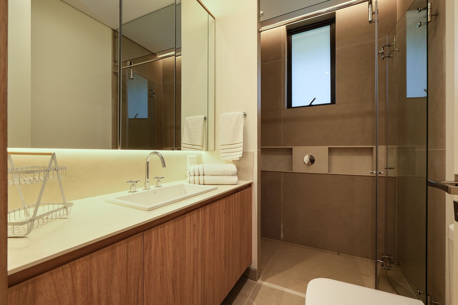 Moderna, funcional e totalmente equipada, a cozinha é um dos pontos altos da casa. Com duas bancadas amplas, iluminação natural abundante e eletrodomésticos de alto padrão, ela foi projetada para refeições práticas ou gastronômicas mais elaboradas. A integração com a área externa e o espaço gourmet torna o ambiente perfeito para reunir família e amigos com conforto e fluidez.