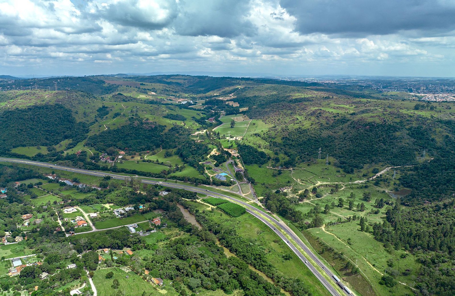 Com uma área total de mais de 2,3 milhões de m², o empreendimento reúne infraestrutura completa, segurança 24 horas e um projeto urbanístico único, que valoriza lagos, nascentes, colinas e a rica fauna e flora locais.