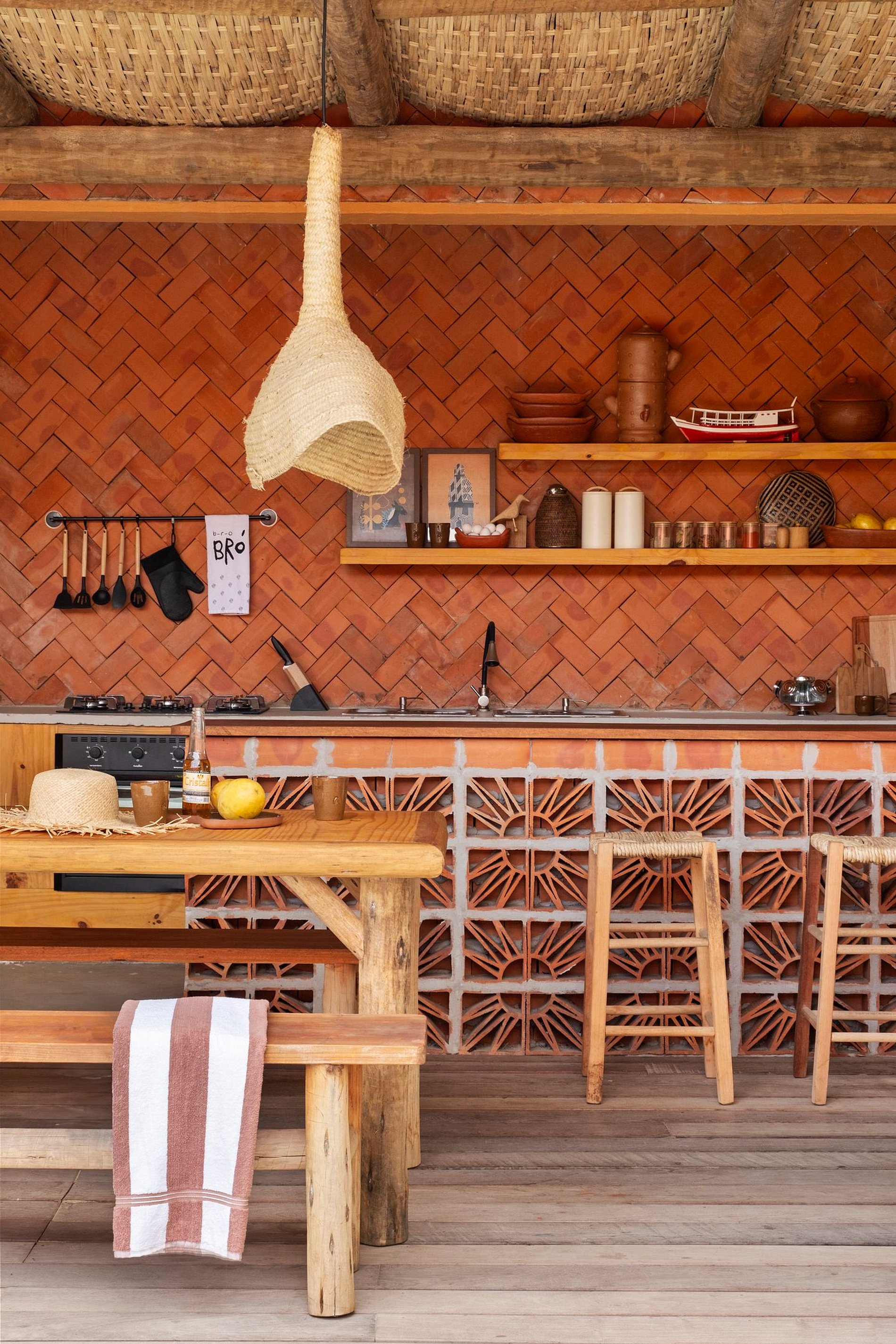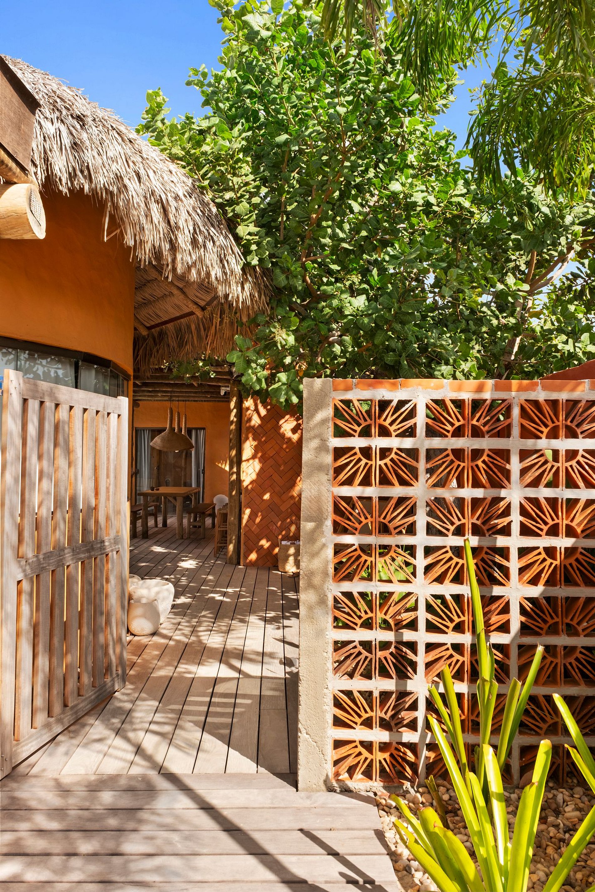 A área externa reúne o verdadeiro espírito da casa: vida simples, sombra de árvores, brisa do mar e muito relaxamento. A propriedade possui piscina, mobiliário externo, espaço para refeições ao ar livre perfeita para encontros descontraídos ao final da tarde.
